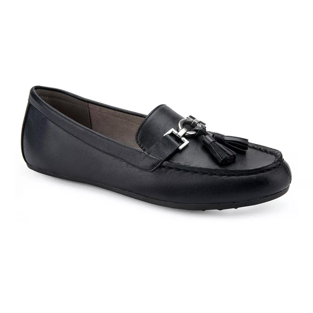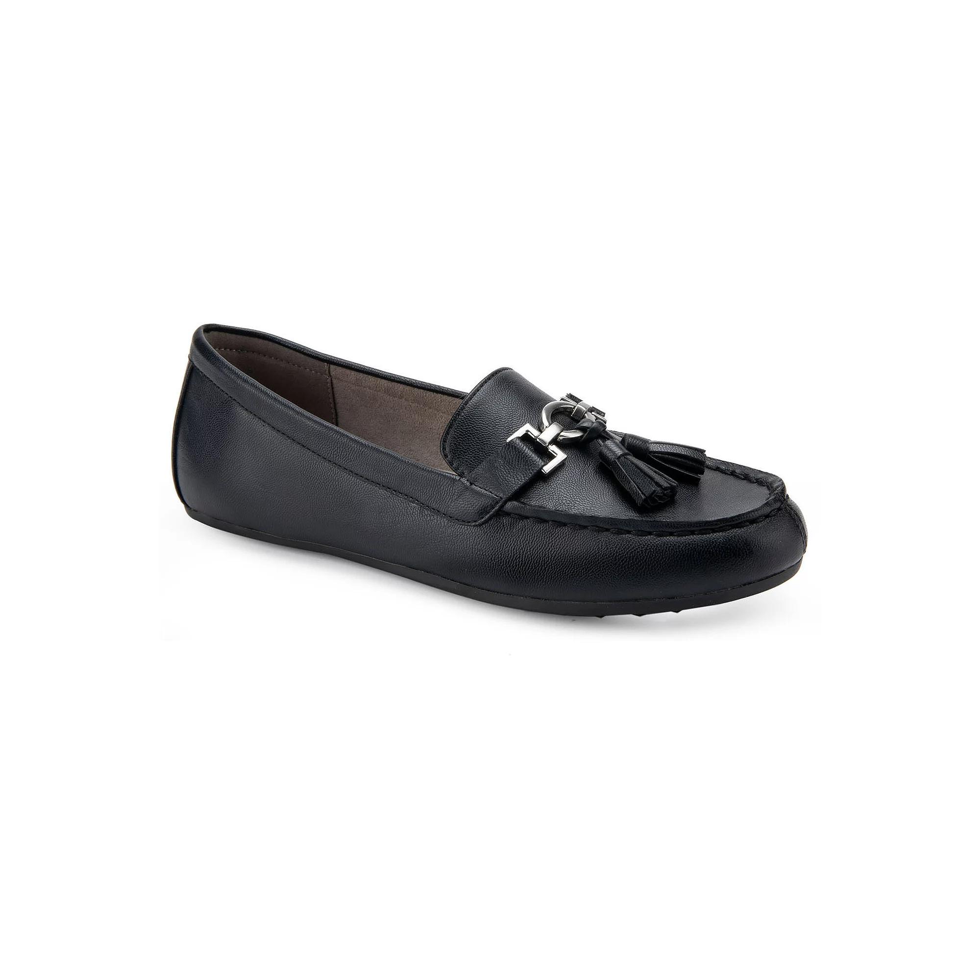 Perfect your look with these classically designed Aerosoles Deanna women's loafers. Click this FOOTWEAR GUIDE to find the perfect fit and more! - https://www.kohls.com/feature/shoesizeguide.jsp. SHOE FEATURES: Detailed design that includes a metallic accent and a tassle, Foam footbed for all-day comfort, Treaded Sole. SHOE CONSTRUCTION: Faux leather upper, Microfiber, manmade lining, Rubber outsole. SHOE DETAILS: Round-toe, Slip-on closure, Foam footbed. Size: 6.5. Color: Black. Gender: female. Age Group: adult.