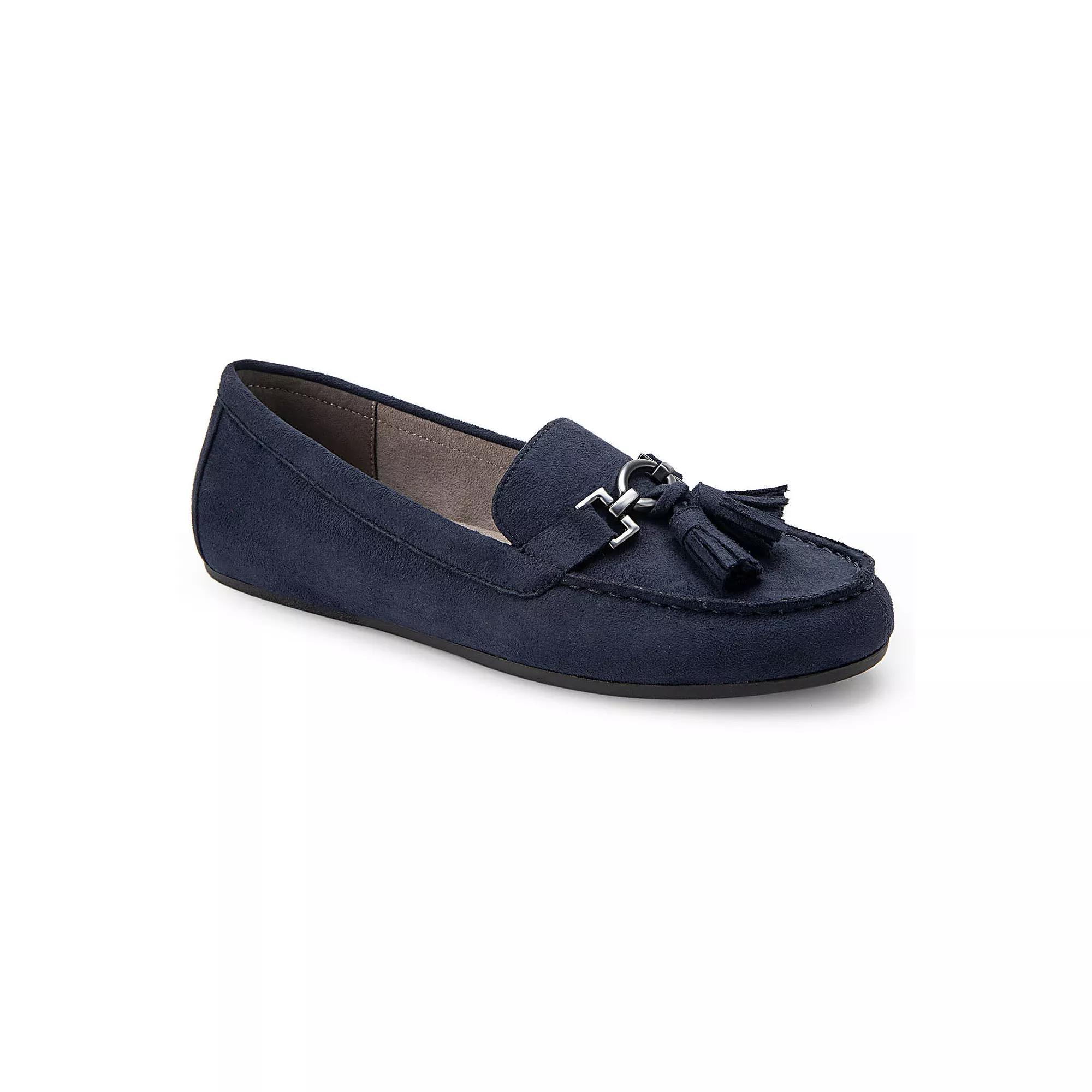 Tassel details evoke a graceful sense of movement on these women's Aerosoles Deanna loafers. Click this FOOTWEAR GUIDE to find the perfect fit and more! - https://www.kohls.com/feature/shoesizeguide.jsp. FEATURES: Silver-tone metal accents. DETAILS: Faux suede, faux leather upper, TPR, manmade outsole, Round toe, Slip-on, Imported. Size: 5. Color: Navy Faux Suede. Gender: female. Age Group: adult. Material: OTHER MATERIAL.