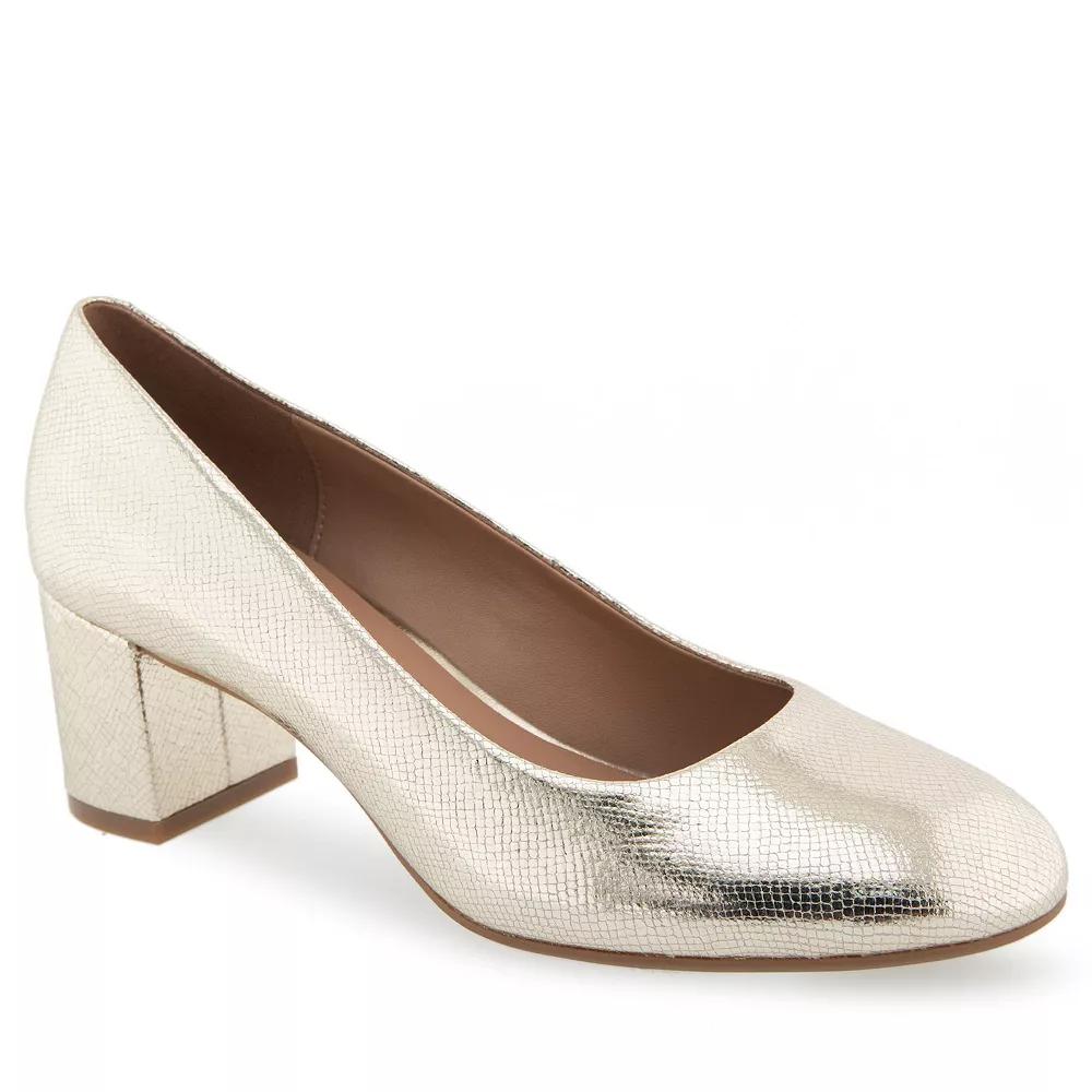 Ebel is a rounded toe, mid-heeled pump thats so simple, its perfect. Comfort and style combine effortlessly on these womens dress pumps from Aerosoles.Click this FOOTWEAR GUIDE to find the perfect fit and more! Ebel is a rounded toe, mid-heeled pump thats so simple, its perfect. Comfort and style combine effortlessly on these womens dress pumps from Aerosoles.Click this FOOTWEAR GUIDE to find the perfect fit and more! FEATURES Sturdy block heelDETAILS Leather upper Synthetic polyurethane lining TPR outsole Round toe Slip-on Foam footbed 2.3-in. heel height Spot clean Imported Size: 8 Wide. Color: Gold. Gender: female. Age Group: adult.