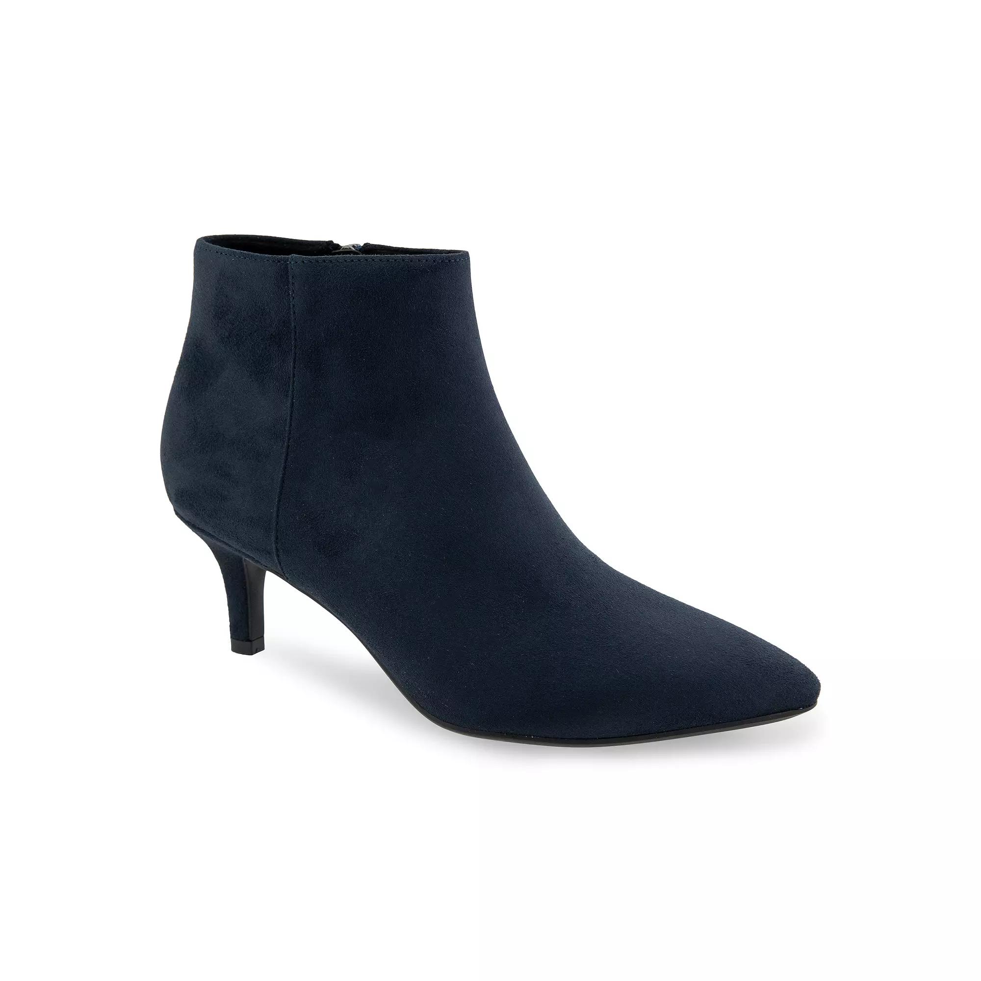 Elevate your looks with these Aerosoles Edith women's ankle boots. Click this FOOTWEAR GUIDE to find the perfect fit and more! - https://www.kohls.com/feature/shoesizeguide.jsp. FEATURES: Stiletto kitten heel, Side zipper for easy on and off, Diamond flex outsole. DETAILS: Faux leather, faux suede upper, Microfabric lining, TPR outsole, Pointed toe, Zipper closure, Foam footbed, 2.5-in. heel, 5-in. shaft, 10-in. circumference, Spot clean, Imported. Size: 11 Wide. Color: Navy Faux Suede. Gender: female. Age Group: adult. Material: SYNTHETIC.