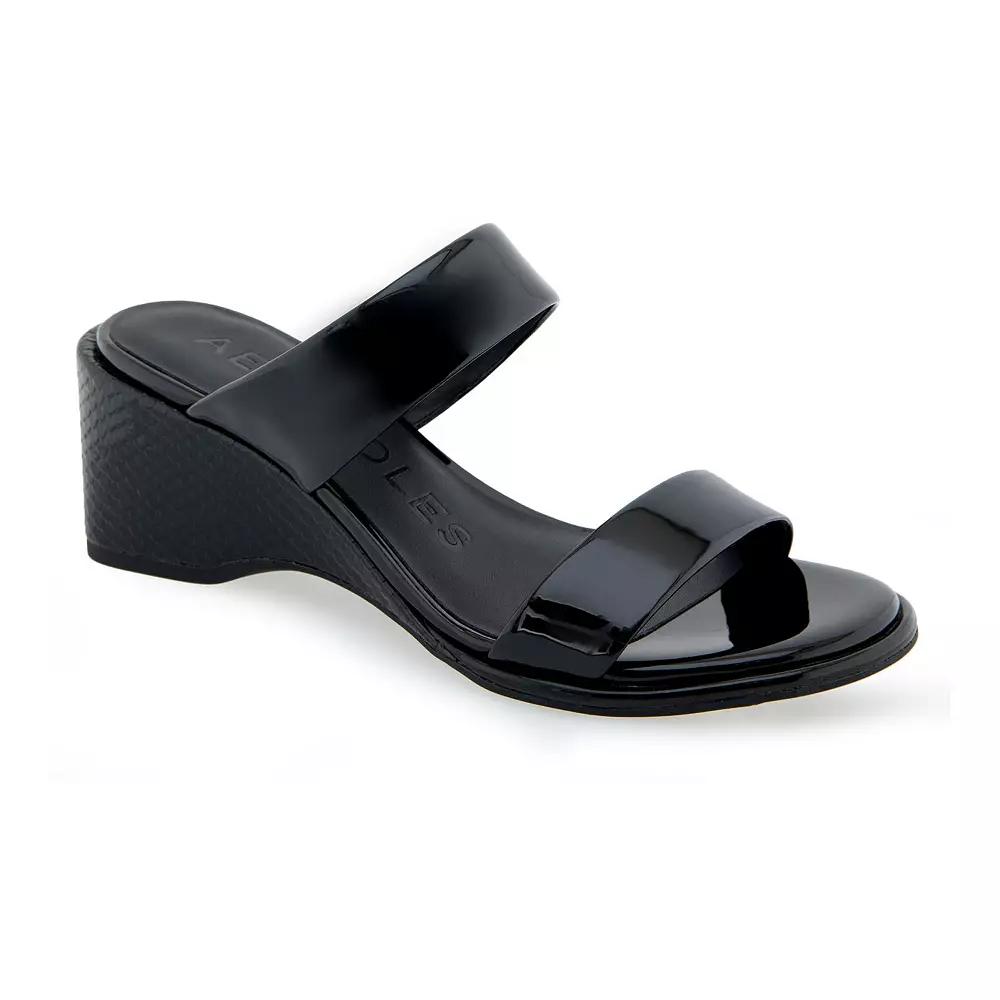Perfect for any occasion, these Aerosoles Norine womens wedge slide sandals ensure an effortless refinement with each step. Click this FOOTWEAR GUIDE to find the perfect fit and more! Perfect for any occasion, these Aerosoles Norine womens wedge slide sandals ensure an effortless refinement with each step. Click this FOOTWEAR GUIDE to find the perfect fit and more! FEATURES Double band design Contoured wedge Durable rubber outsole Slip-on for easy on and offDETAILS Patent faux leather, patent faux suede upper Synthetic lining and midsole TPR outsole Round toe Slip-on 2.25-in. heel Spot clean Imported Size: 10.5. Color: Black. Gender: female. Age Group: adult.