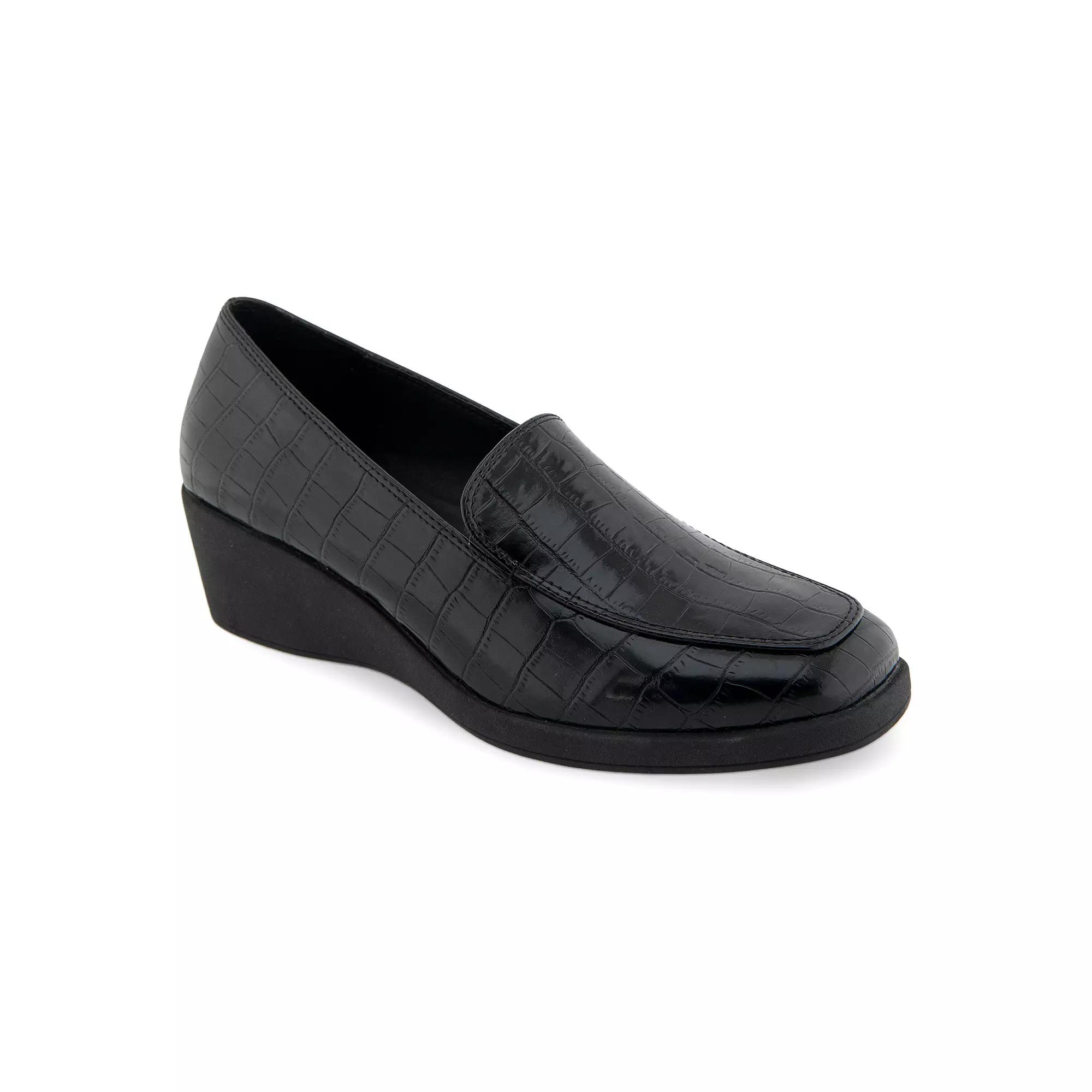 Step into style with these Aerosoles Tart Womens Wedge Heel Loafers.Click this FOOTWEAR GUIDE to find the perfect fit and more! Step into style with these Aerosoles Tart Womens Wedge Heel Loafers.Click this FOOTWEAR GUIDE to find the perfect fit and more! FEATURES Close-toe Wedge provides stabilityDETAILS Faux leather upper & lining Synthetic midsole Thermoplastic rubber outsole Almond toe Slip-on Foam footbed Heel height: 1.75 in. Platform height: 0.5 in. Spot clean Imported Size: 6. Color: Black Croco. Gender: female. Age Group: adult.