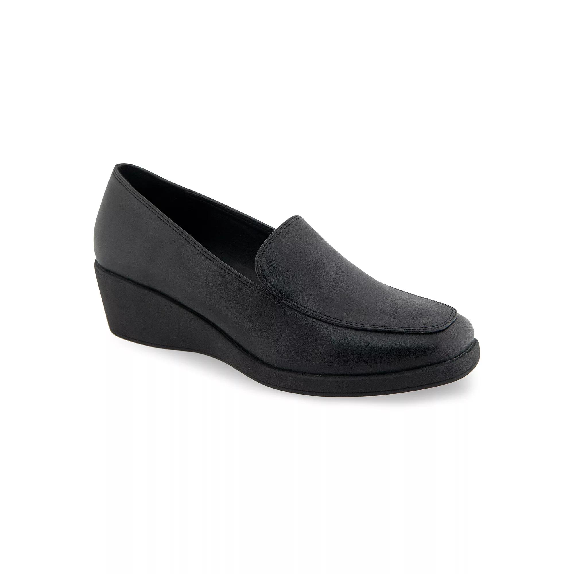 Step into style with these Aerosoles Tart Womens Wedge Heel Loafers.Click this FOOTWEAR GUIDE to find the perfect fit and more! Step into style with these Aerosoles Tart Womens Wedge Heel Loafers.Click this FOOTWEAR GUIDE to find the perfect fit and more! FEATURES Close-toe Wedge provides stabilityDETAILS Faux leather upper & lining Synthetic midsole Thermoplastic rubber outsole Almond toe Slip-on Foam footbed Heel height: 1.75 in. Platform height: 0.5 in. Spot clean Imported Size: 11. Color: Black Faux Leather. Gender: female. Age Group: adult.