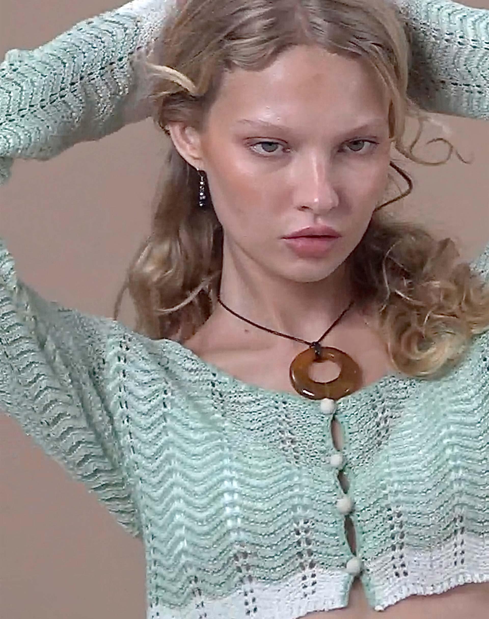 Aesha Cropped Cardigan in Sage Cream