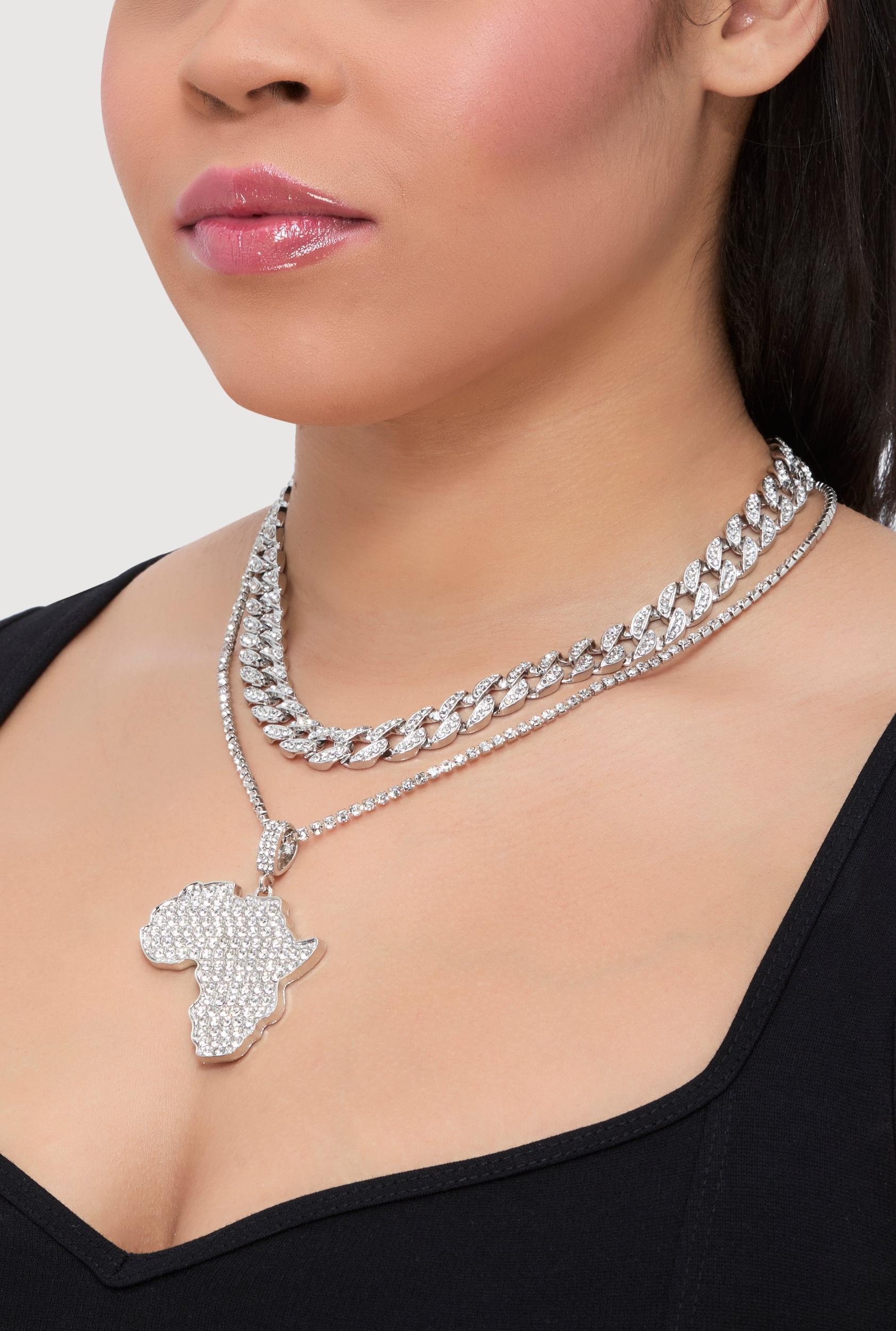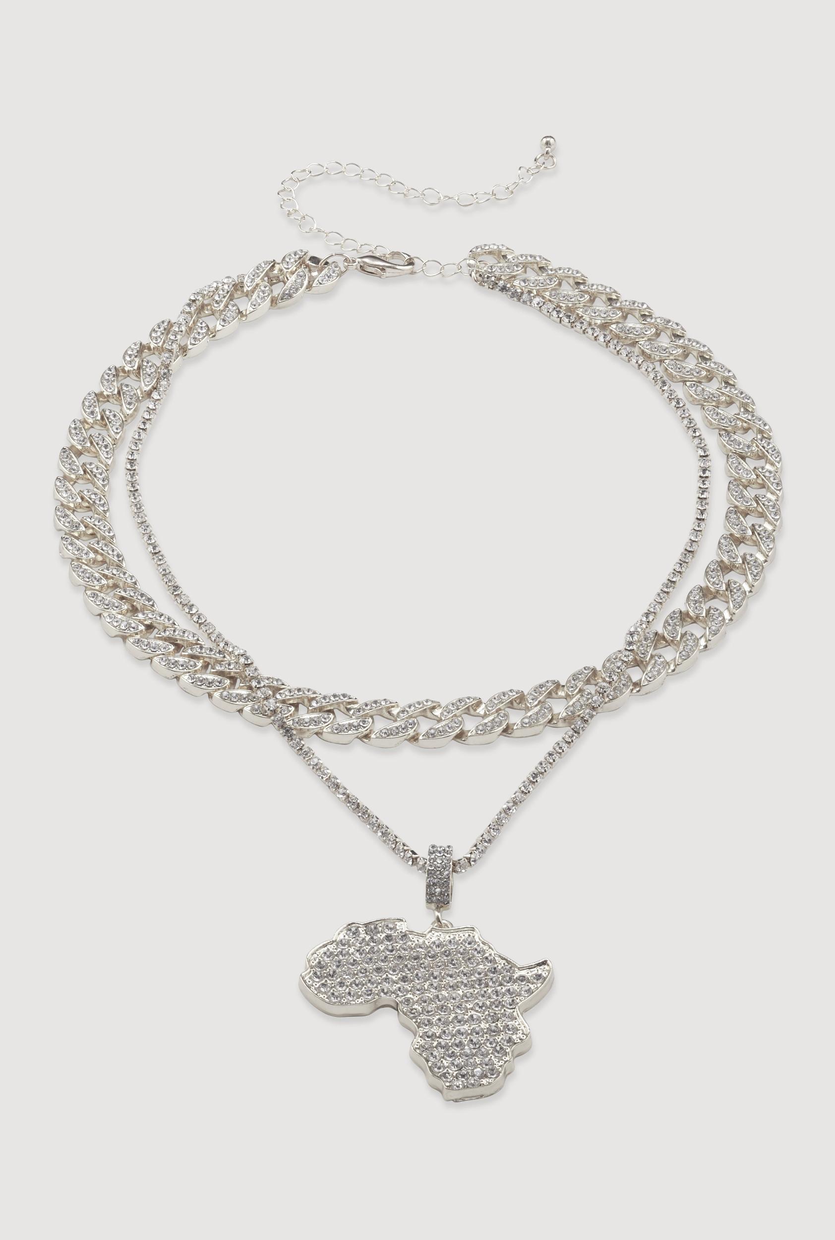Africa Pendant Layered Chain Link Tennis Necklace Unisex Product Image