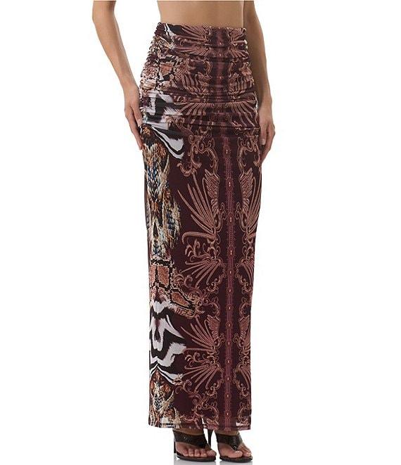 AFRM Bevin Printed High Waisted Mesh Coordinating Maxi Skirt