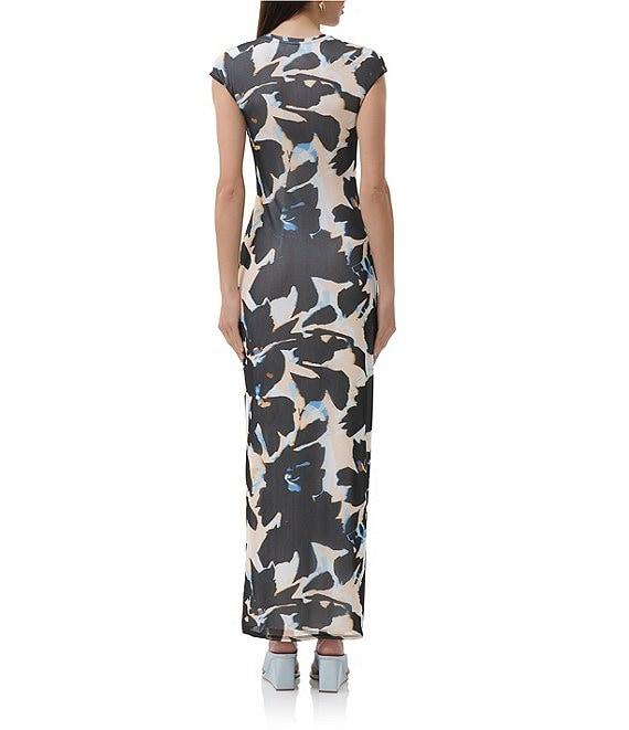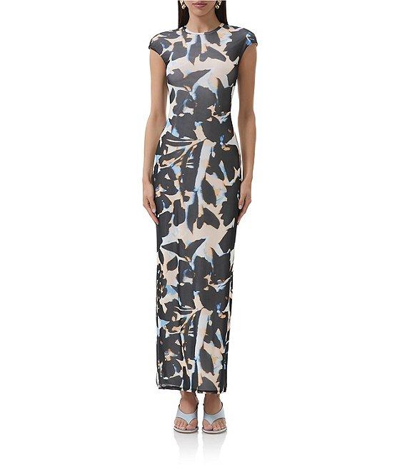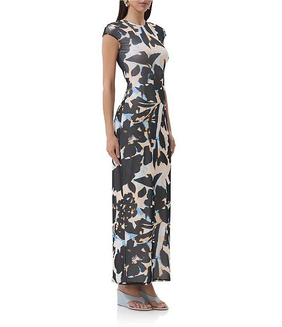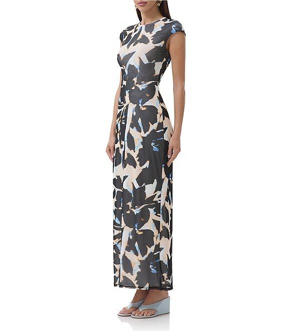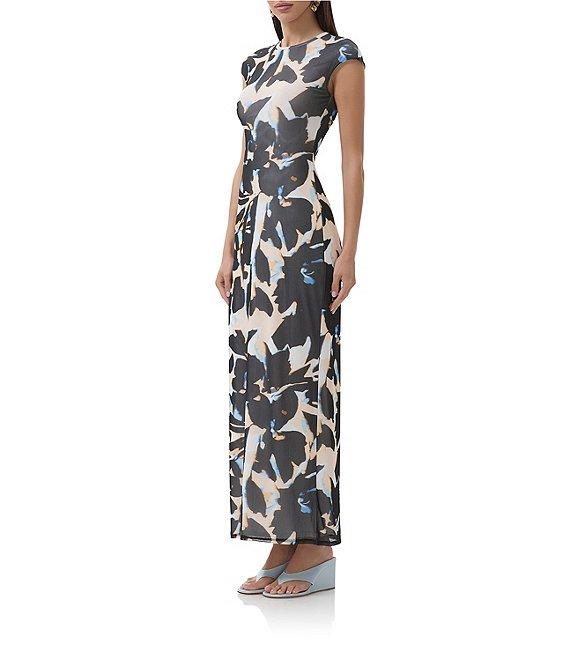 AFRM Cody Floral Mesh Crew Neck Cap Sleeves Maxi Dress