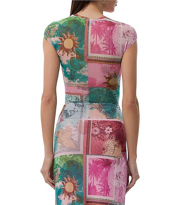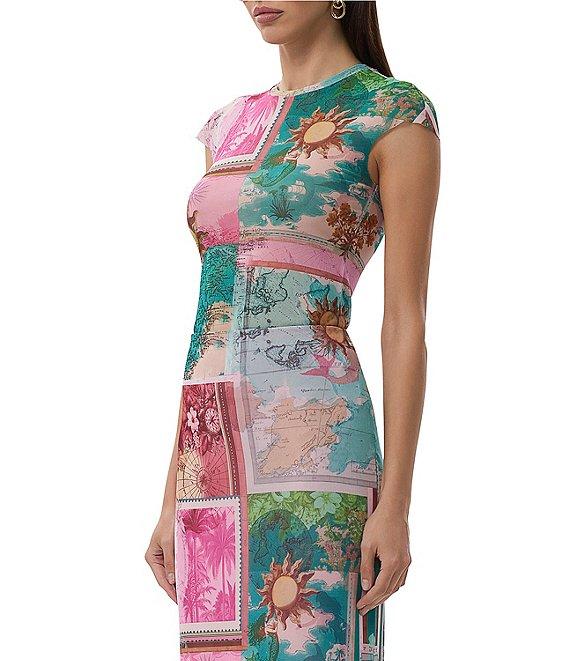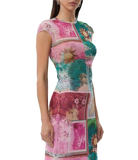 AFRM Nina Tropical Postcard Print Crewneck Short Sleeve Mesh Top