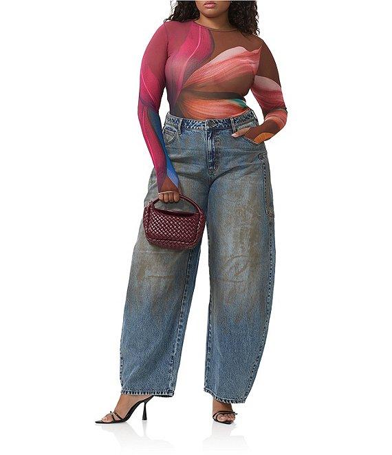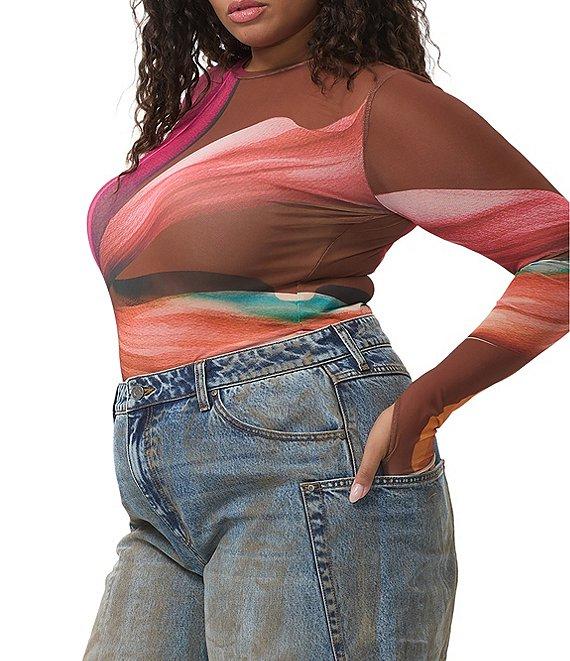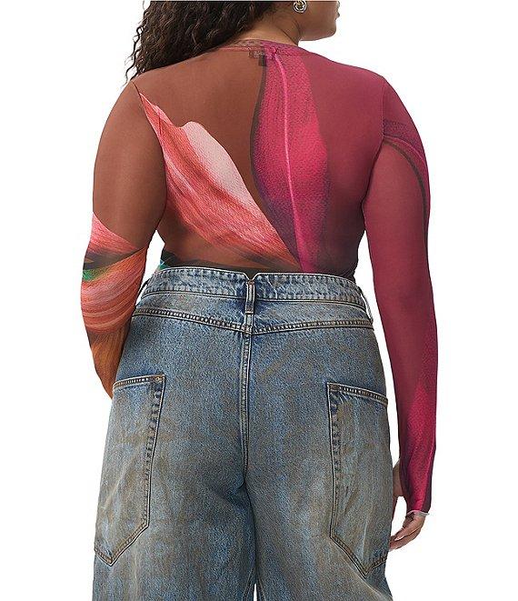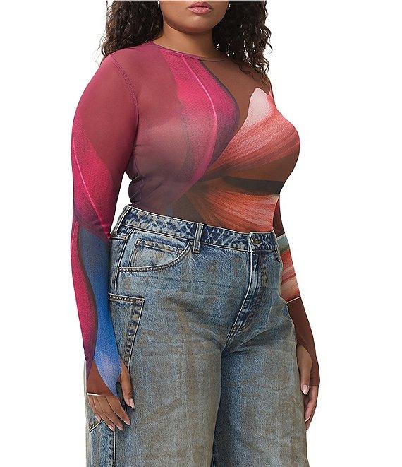 AFRM Plus Kaylee Printed Crew Neck Long Sleeve Mesh Top