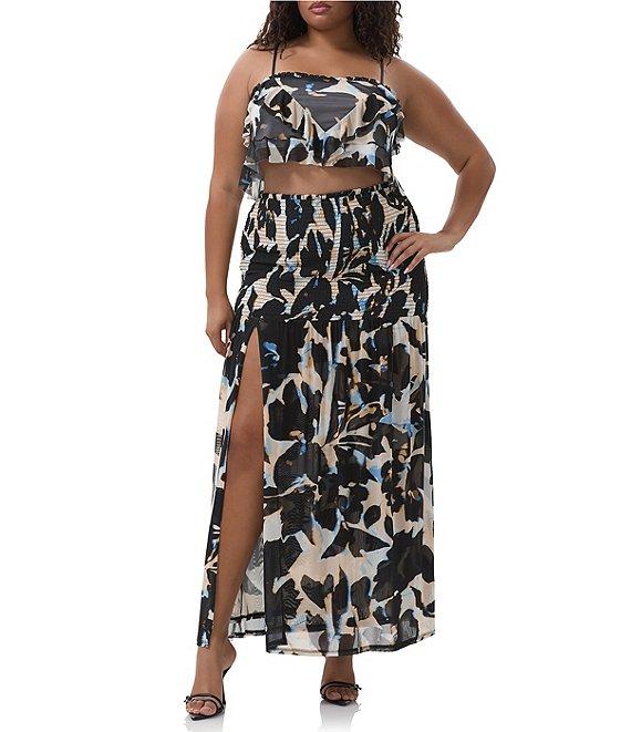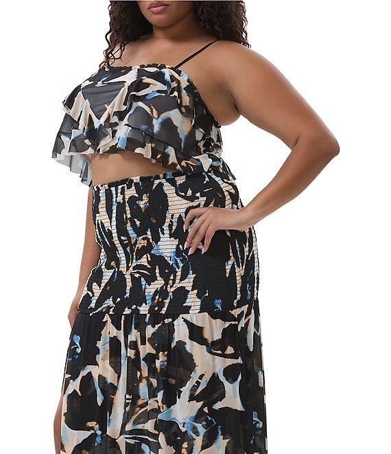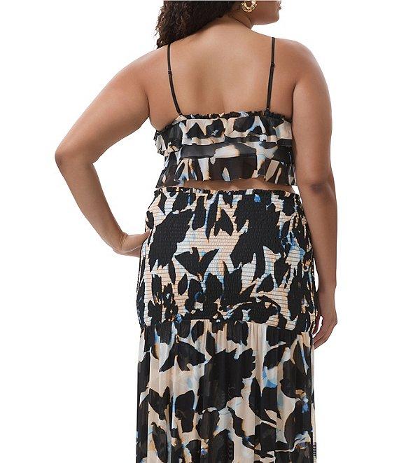 From AFRM Plus, this top features: Power mesh knit fabrication Floral print Square neckline Sleeveless Spaghetti straps Ruffle detail Fully lined Flutter hemline Pullover construction Approx. 6" length Polyester/spandex Machine wash Imported.