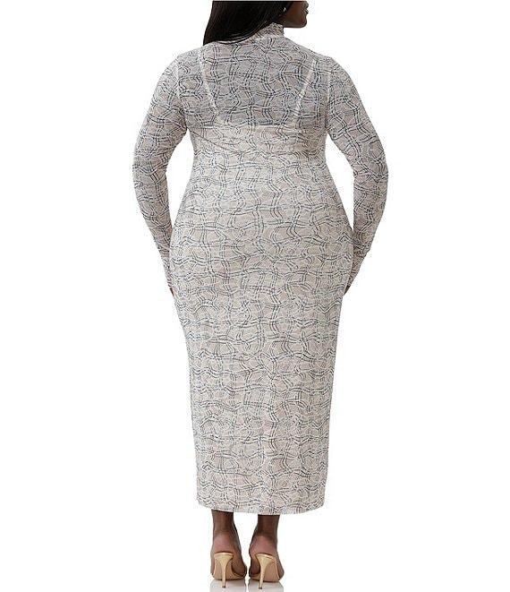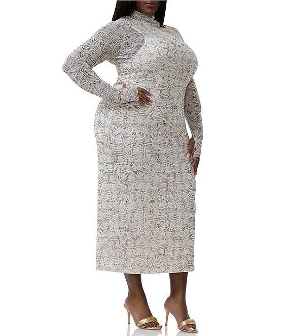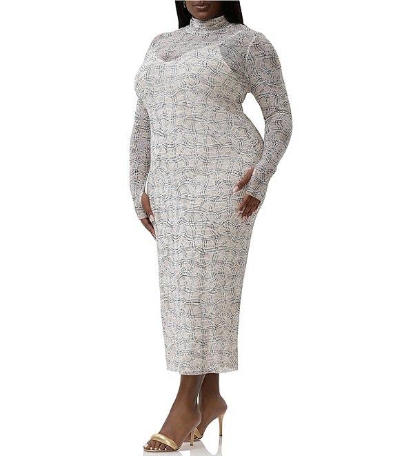 AFRM Plus Shailene Lace Plaid Print Turtleneck Long Sleeve Midi Dress