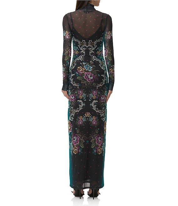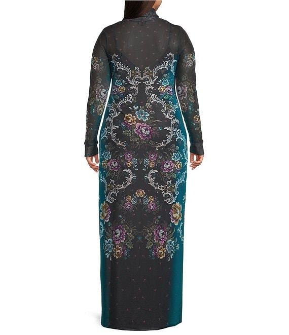 AFRM Plus Size Billie Baroque Floral Print Mock Neck Long Sleeve Mesh Maxi Dress