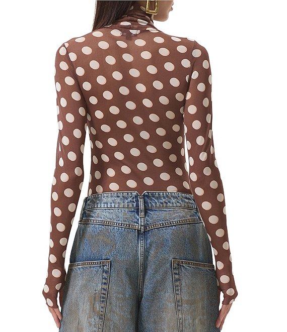 AFRM Zadie Dot Print Mock Neck Long Sleeve Mesh Top
