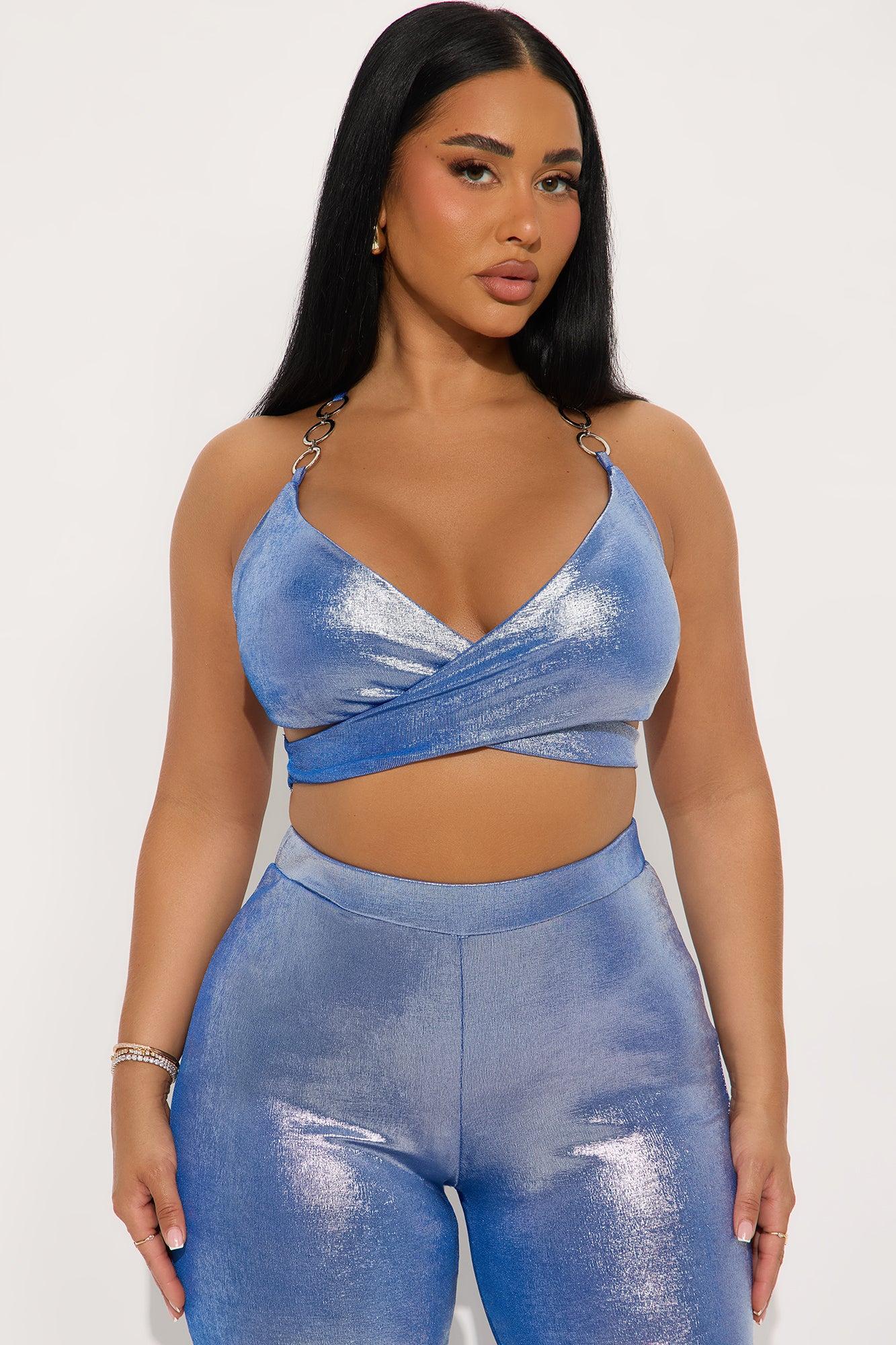 Available In Blue. 2 Piece Ensemble Cami Top and Flare Pant Set Stretch 35" Inseam Elastic Waistband Top Self: 95% Polyester 5% Spandex Lining: 100% Polyester Bottom Self: 95% Polyester 5% Spandex Imported California Proposition 65WARNING: Cancer and Reproductive Harm - www.P65Warnings.ca.gov.