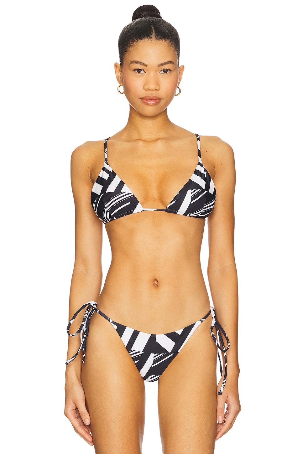 80% polyester, 20% spandex. Machine wash. Unpadded cups. Self-tie back strap and adjustable shoulder straps. Adjustable sliding fit. Item not sold as set. Made in China. Revolve Style No. SDYS-WX1. Manufacturer Style No. SS0101V1.
