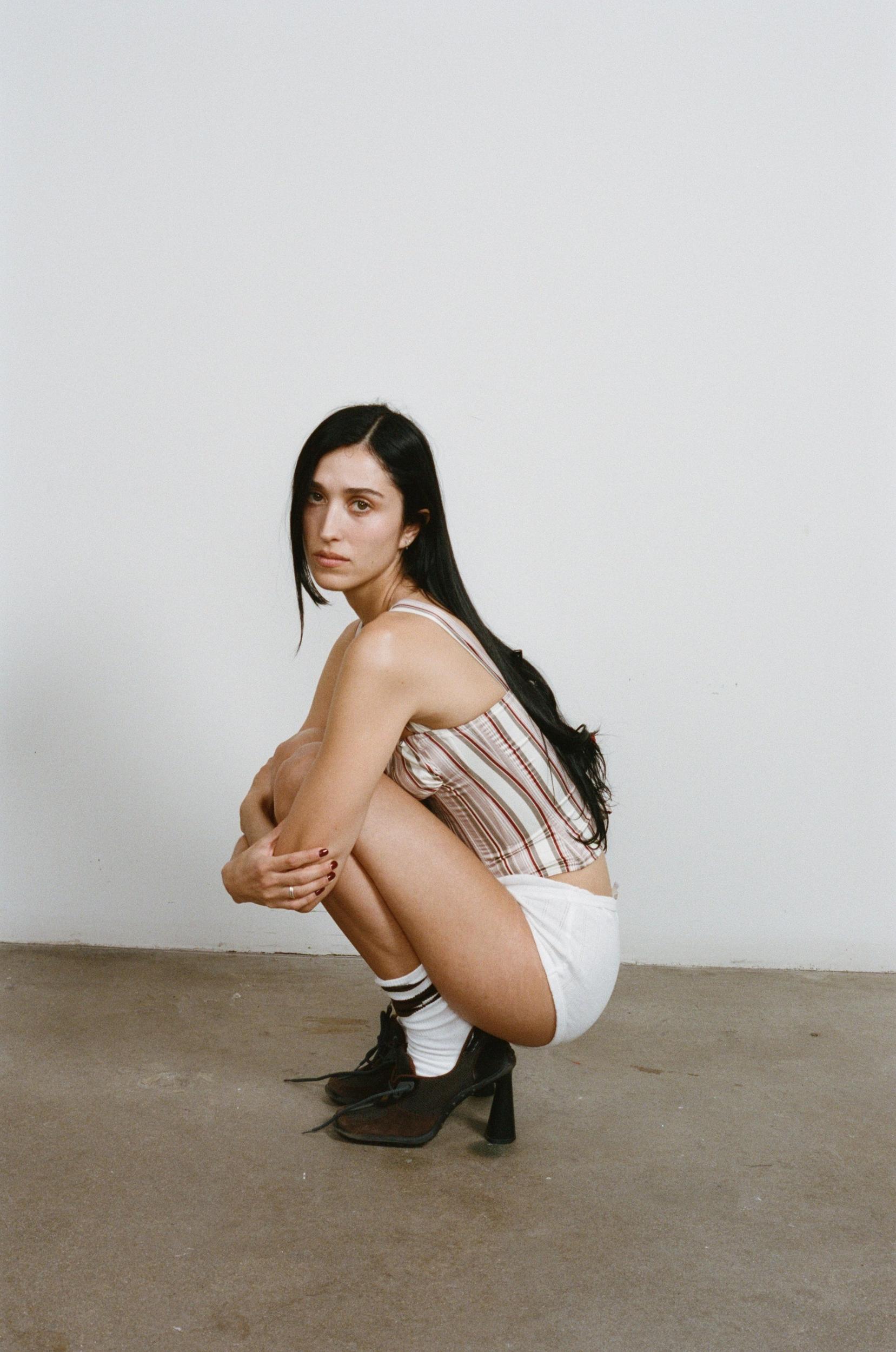 Introducing the Agnes in Tuxedo Stripe. This satin number is boned around the bodice with a loose bust and adjustable front tie drawstring, for a busty lift. Giving you hot milk maiden.