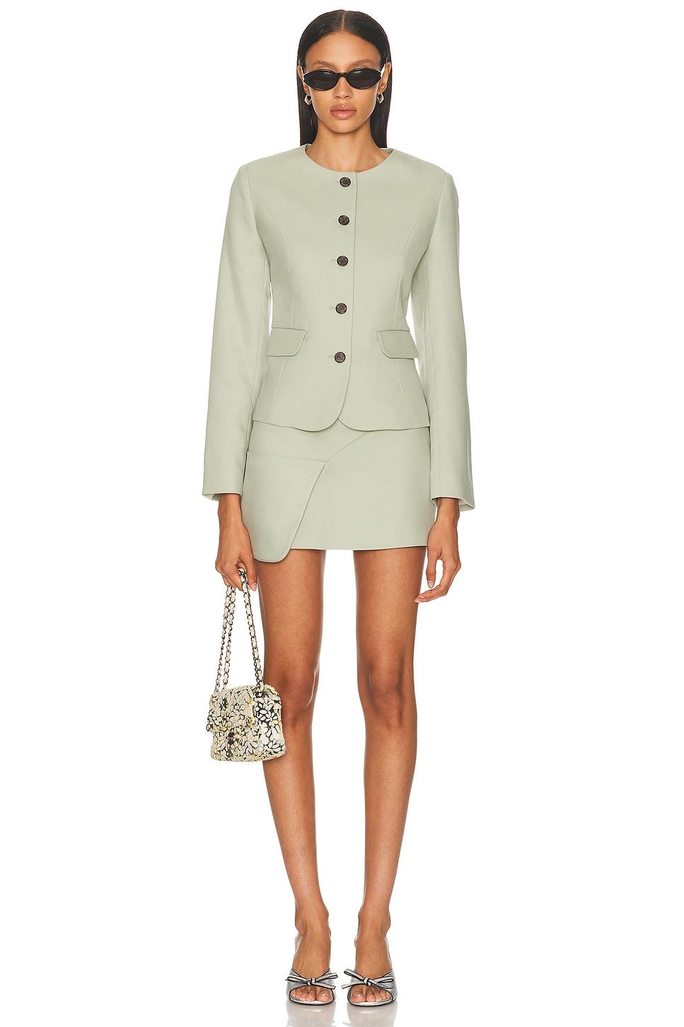 jacketSelf: 100% recycled polyesterLining: 100% viscose / Dry clean only / Front button closure / Light padding at shoulders / Lower front flap pockets / Twill fabric / Item not sold as a set / Made in US / Our Style No. SLGF-WO46 / Manufacturer Style No. H25O050-F002 / Model is wearing size S.