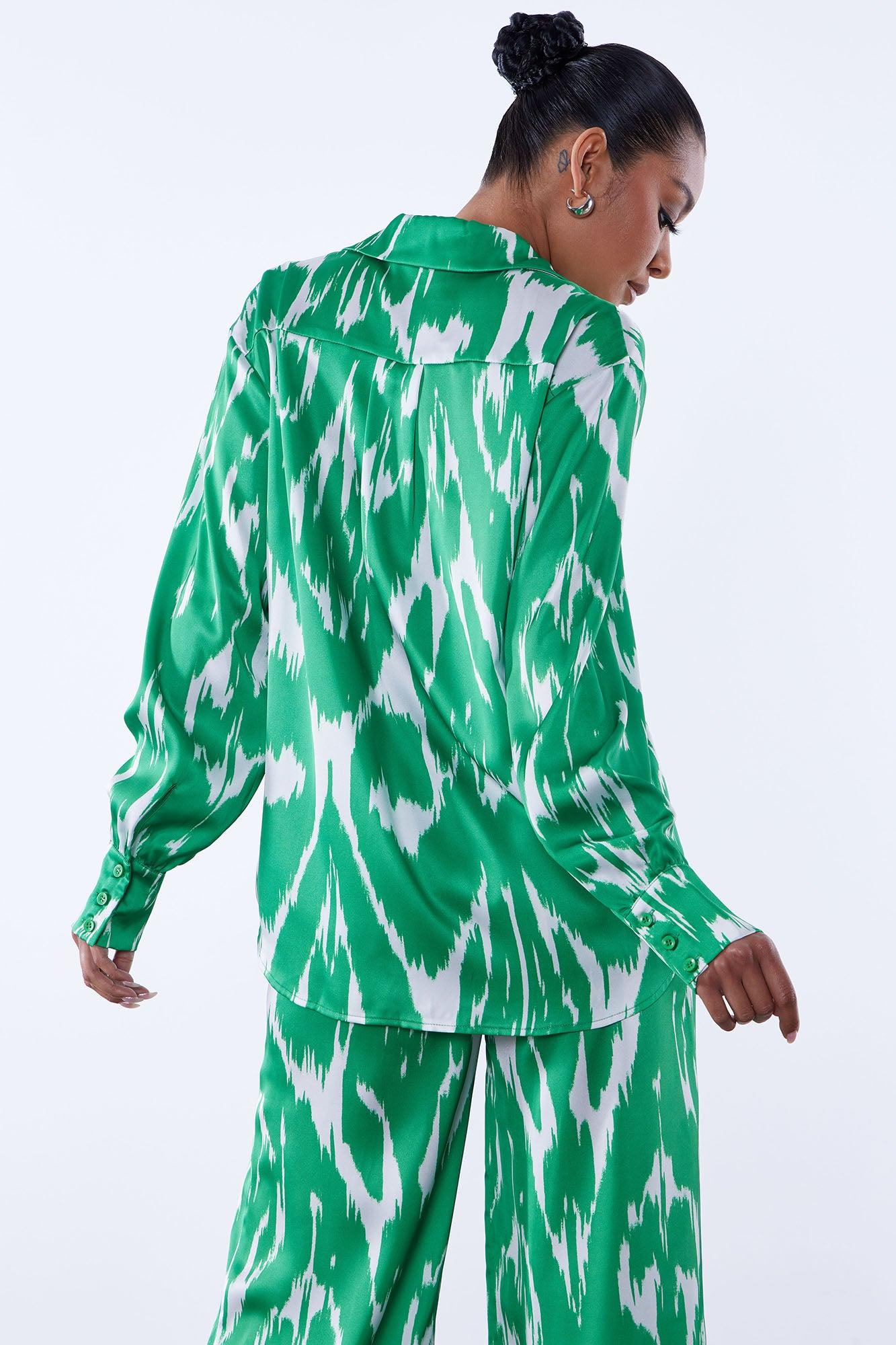 Agnes Satin Shirt - Green/combo