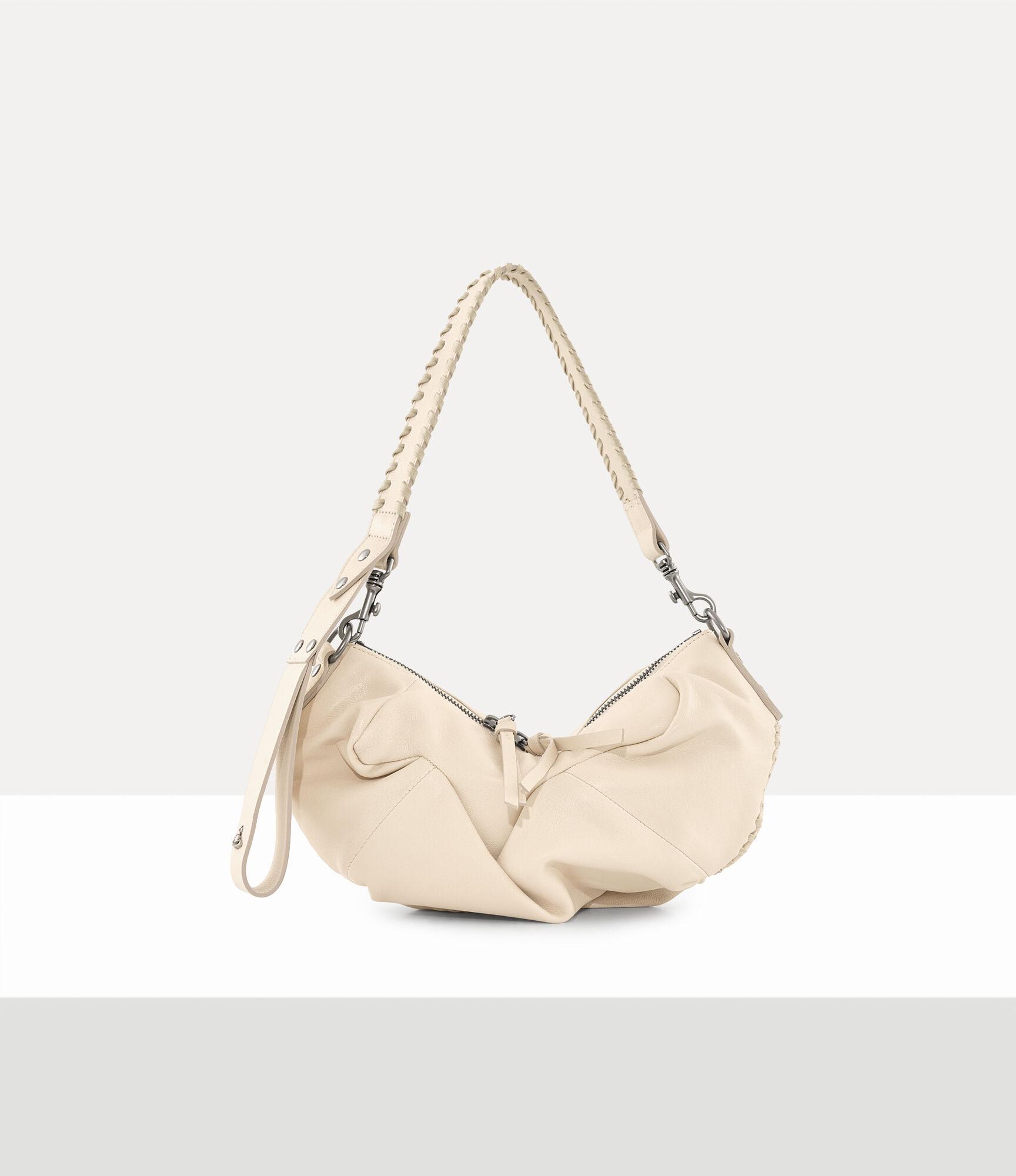 Our Agnes Small Shoulder bag in supple leather features a unique pattern cutting system, inspired by the Autumn-Winter 2001 ‘Wild Beauty’ collection, complete with drapery at the front and a curved silhouette. The handle is reminiscent of the bondage whips sold in our iconic Sex boutique, while the three-dimensional orb-branded strap recalls the house's ethos of taking the past into the future.