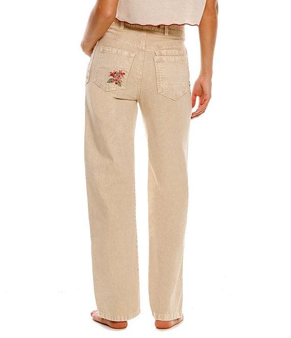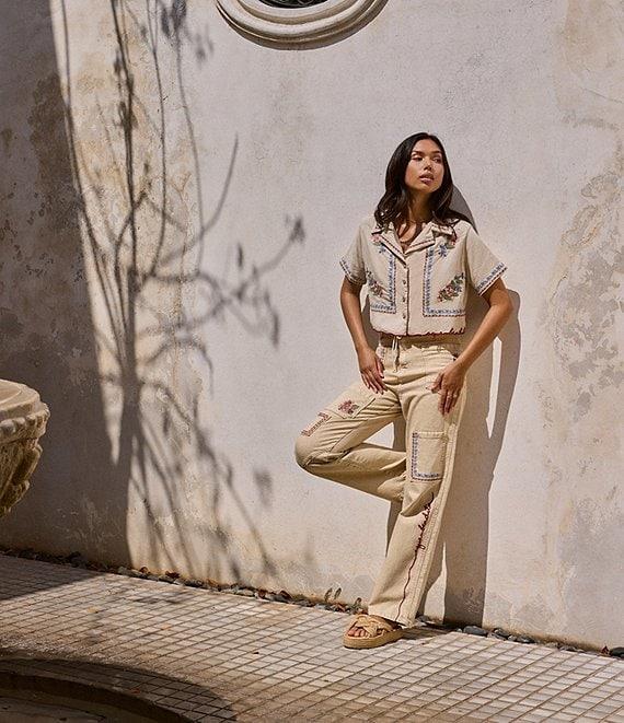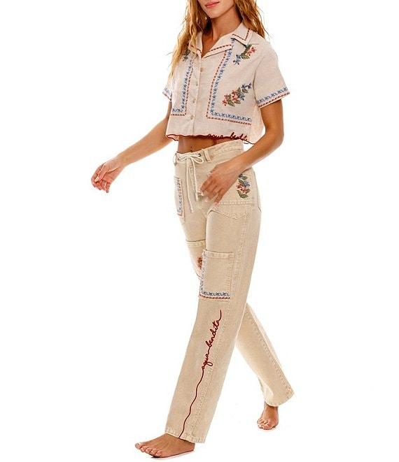 Agua Bendita Moorea Blush Floral Embroidered Straight Cargo Pants