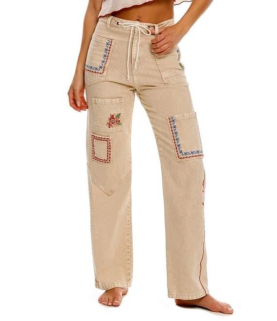 From Agua Bendita, this pant features: Woven fabrication with floral embroidery Straight leg High-rise Cargo pockets Front button fly closure Approx. 42.9" length Cotton Hand wash Imported.