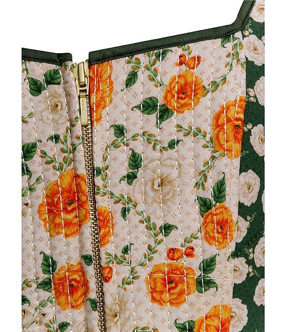 From Agua Bendita, this top features: Quilted woven fabrication Floral print Structured bodice Square neckline Sleeveless Peplum hem Front zip closure Approx. 21.26" length Cotton Hand wash Imported.