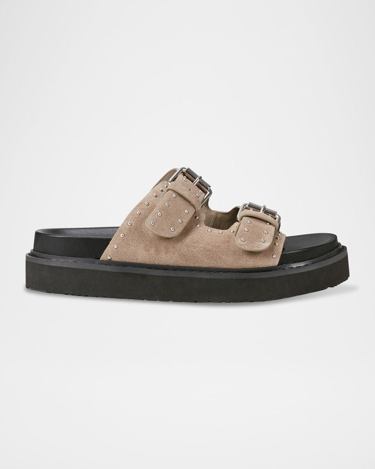 Agusta Micro Stud Leather Dual-Buckle Sandals