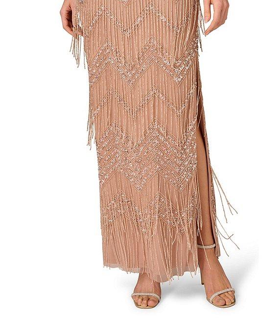 Aidan Mattox Beaded Mesh Cape Sleeves Front Keyhole Long Dress