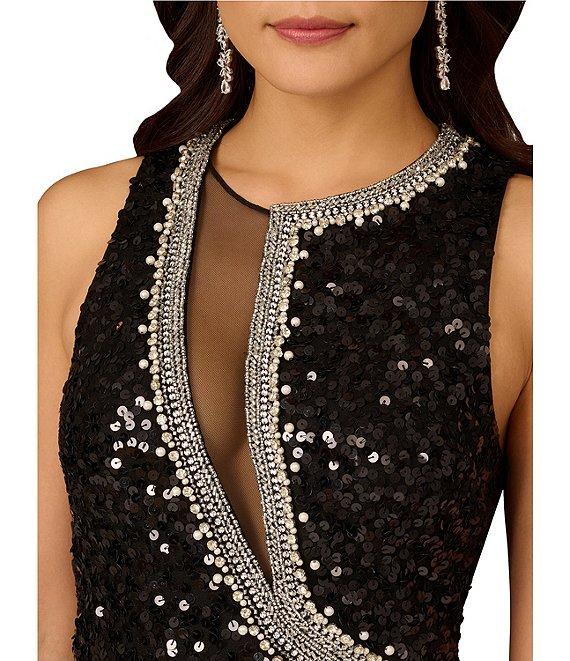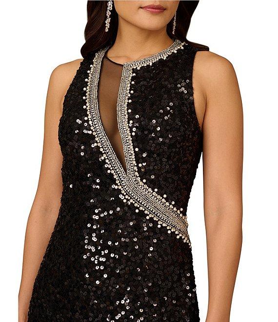 Aidan Mattox Crew Neck Sleeveless Sequin Gown