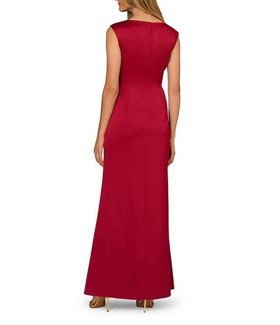 Aidan Mattox Satin Crew Neck Sleeveless Side Ruched Sheath Gown