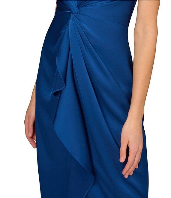 Aidan Mattox Satin V-Neck Twist Front with Cascading Ruffle Gown