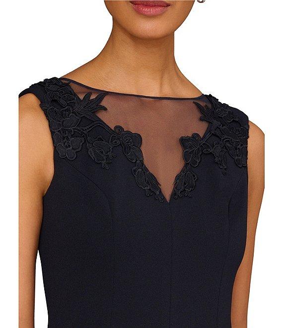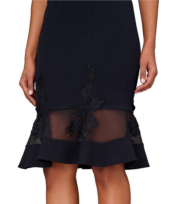 Aidan Mattox Stretch V-Neck Cap Sleeve Flounce Floral Mesh Insert Sheath Dress