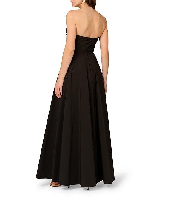 From Aidan Mattox, this gown features:Walk thru silhouetteMixed media fabricationSweetheart necklineStraplessStretch taffeta bodiceCrepe column skirt with stretch taffeta overlayZip back closureLinedApprox. 61" lengthPolyester/elastaneDry cleanImported.