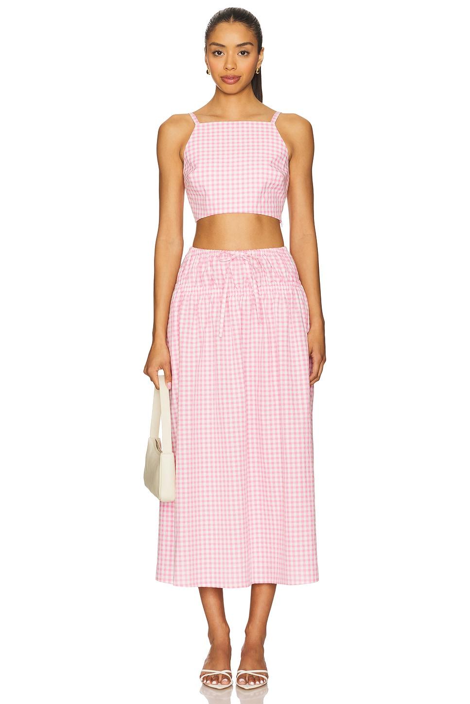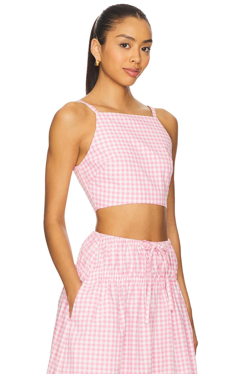 Self: 63% cotton, 37% polyesterLining: 100% polyester. Hand wash cold. Hidden side seam zipper closure. Cropped styling. Midweight linen fabric. Item not sold as set. Made in China. Revolve Style No. LOVF-WS3184. Manufacturer Style No. LFS10069 U25.