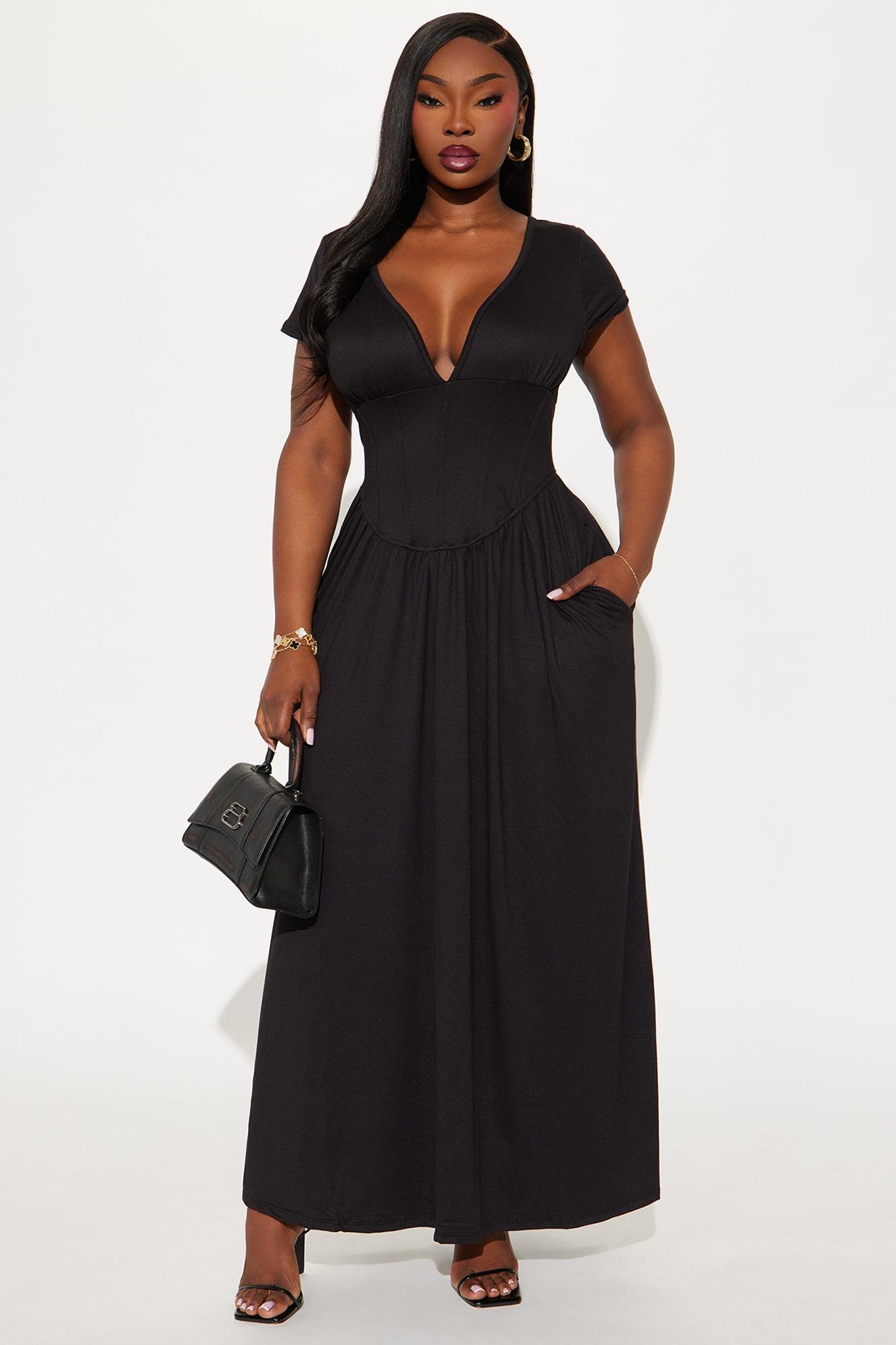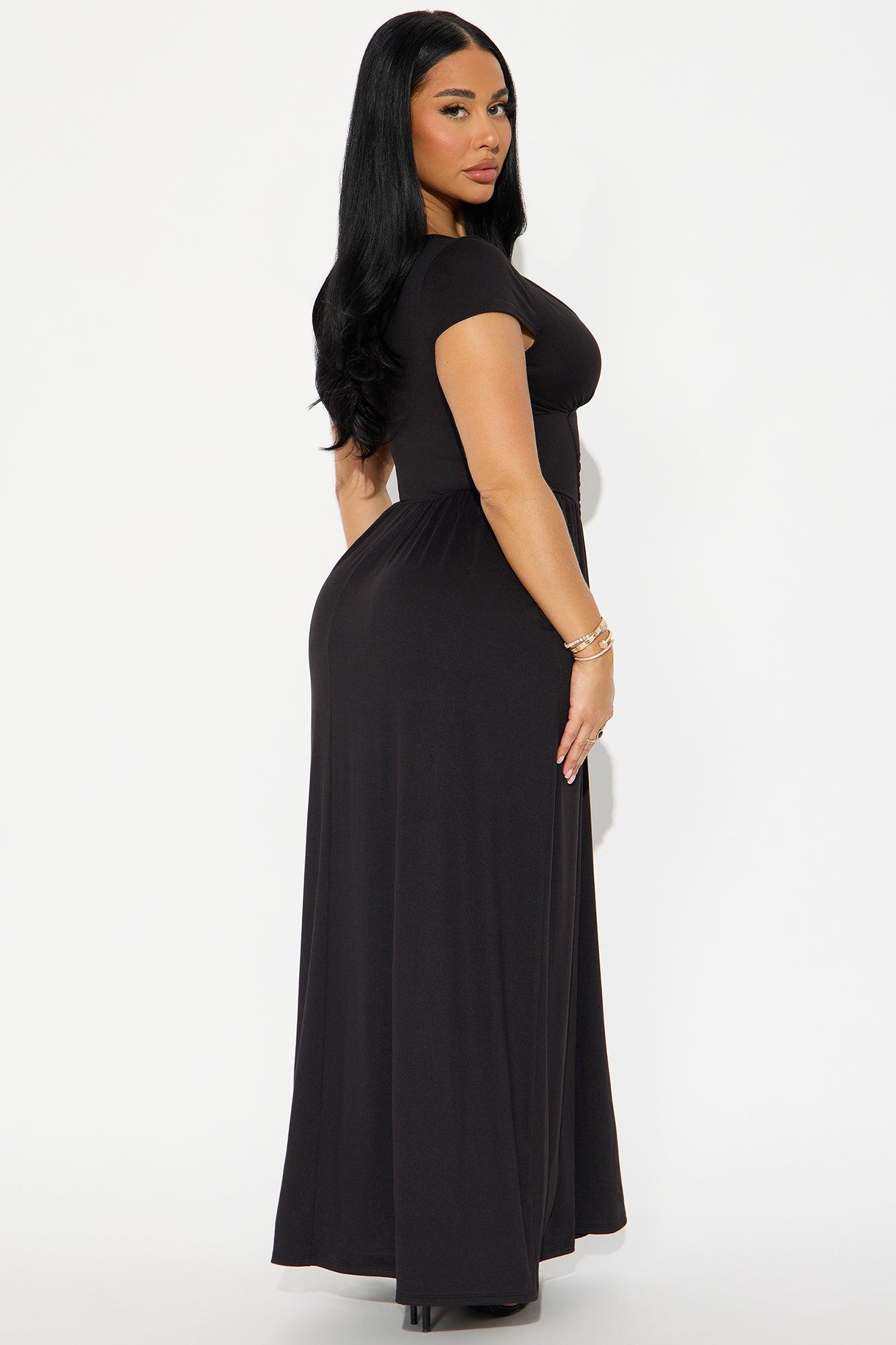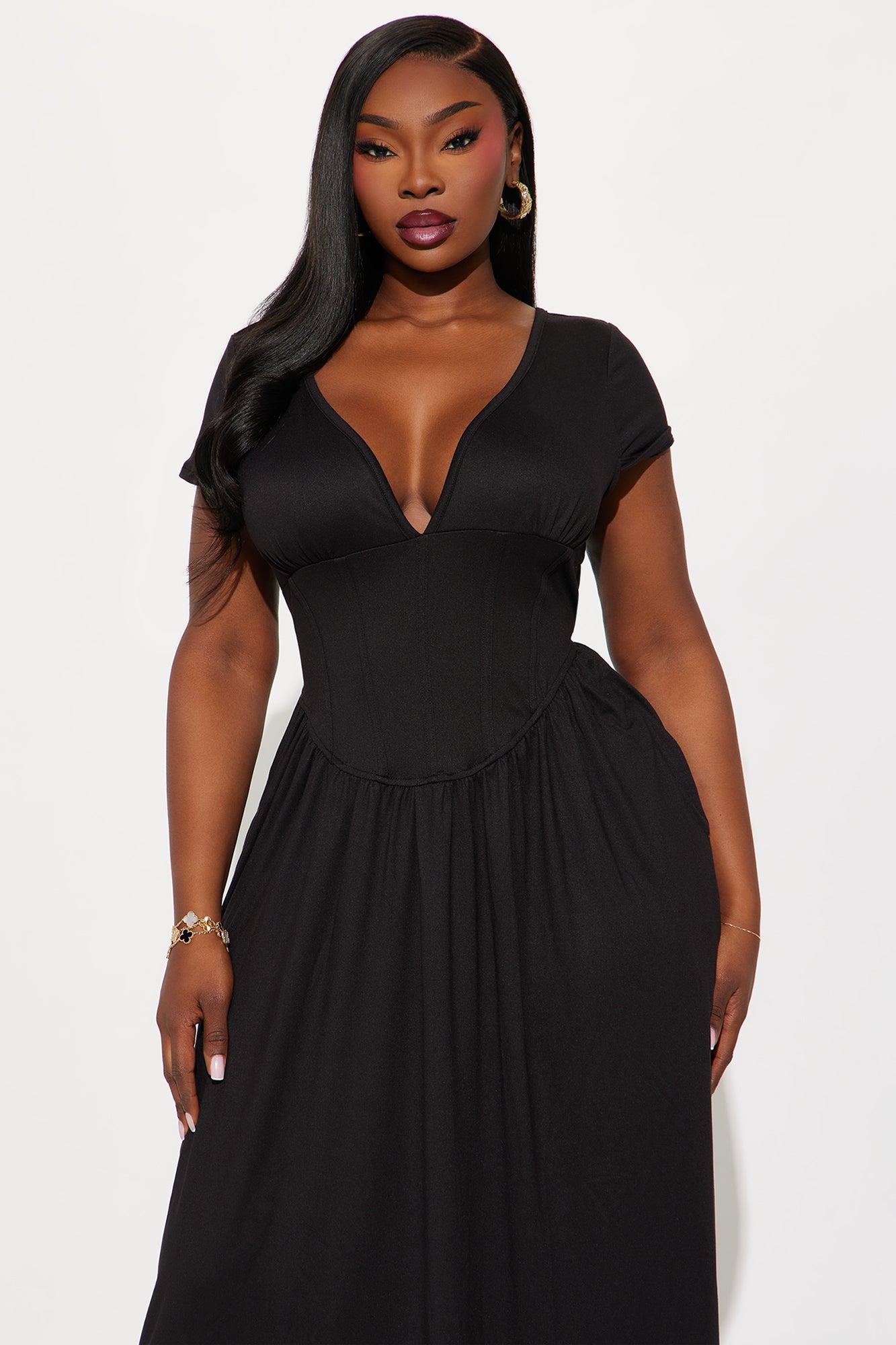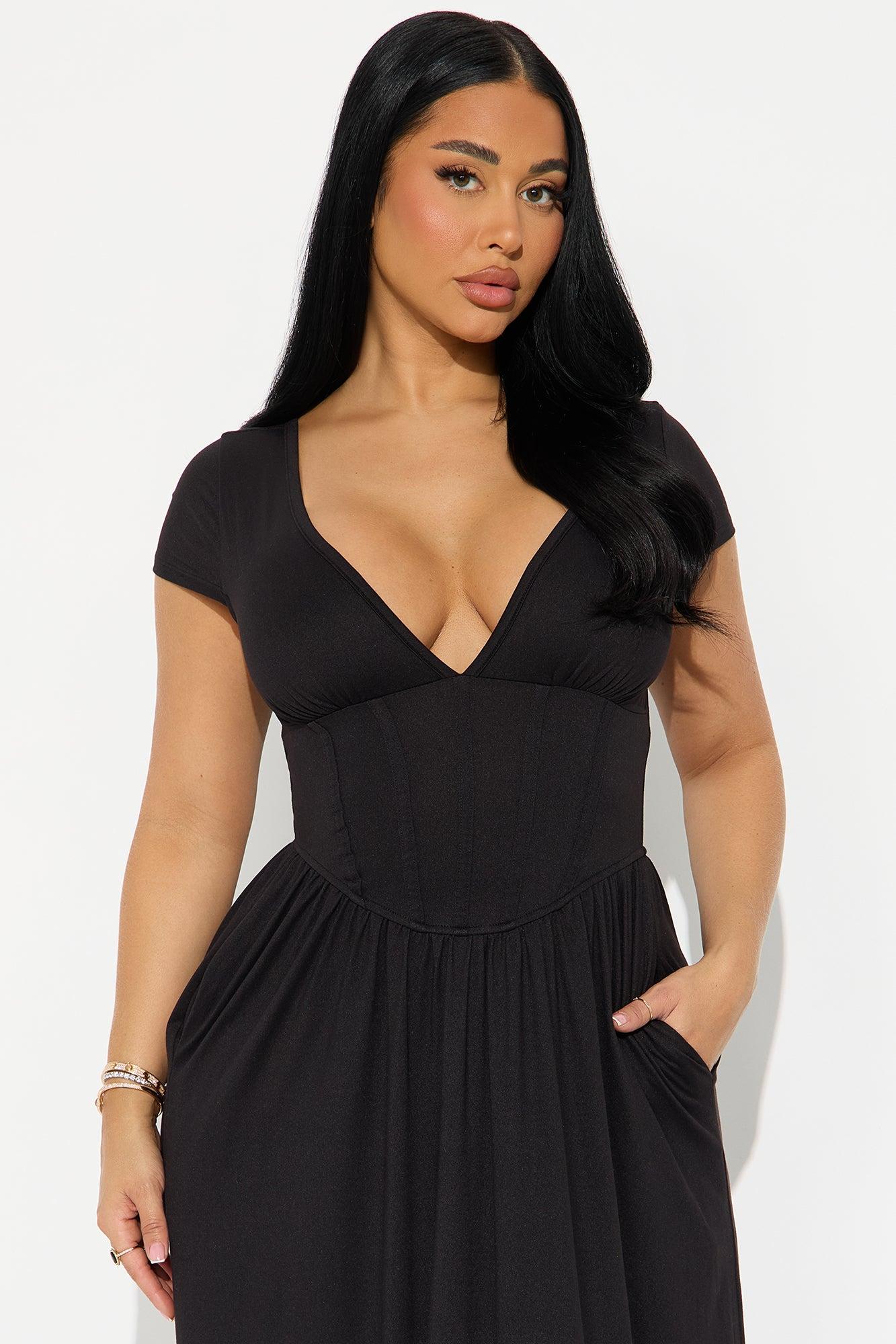 Ainsley Cap Sleeve Corset Maxi Dress - Black