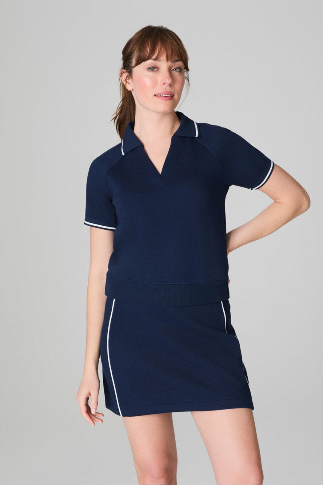 Our SPANX® AirEssentials Pique Polo Top is made with the same super-soft, light-as-air spacer fabric as our AirEssentials originals now with a pique application for a subtly textured look and feel. Inspired by the iconic polo silhouette, this versatile top features a classic V-neck polo collar with contrast trim. Whether you're headed to tennis or brunch, this throw-on-and-go top will truly take you anywhere and everywhere.