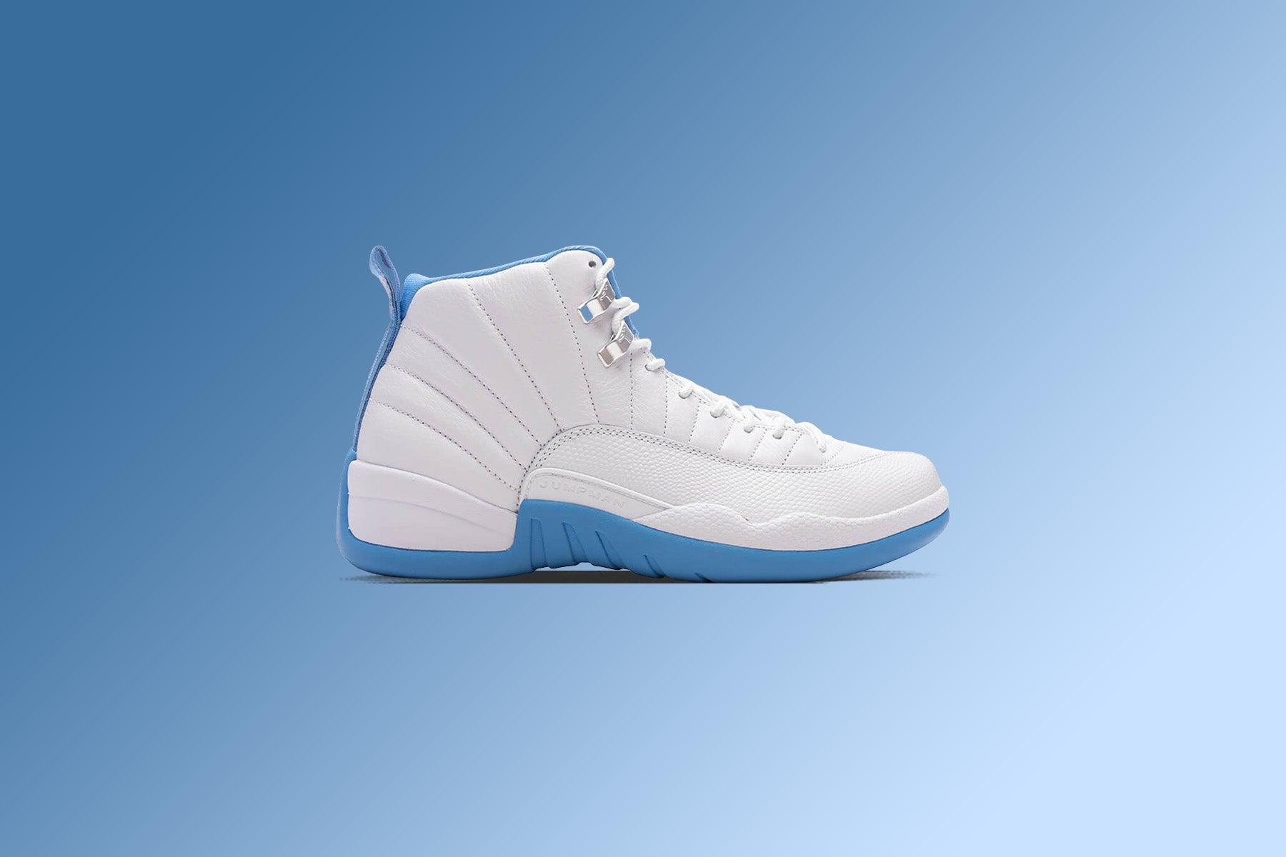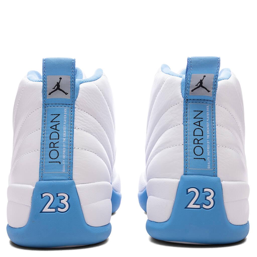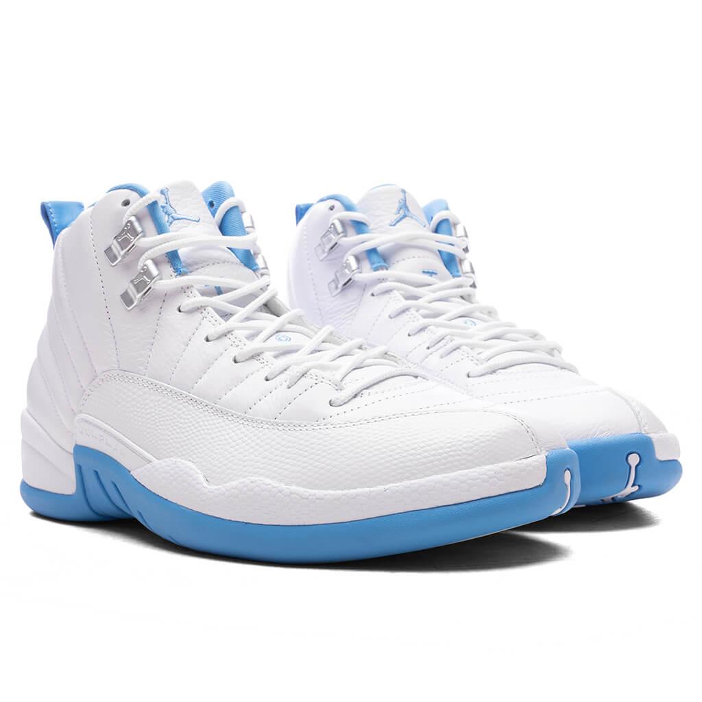 The Air Jordan 12 Retro 'Melo' makes a return in 2025. Originally released in 2004 to highlight Carmelo Anthony's outstanding rookie season, this sneaker returns to honor the long-time Jordan Brand athlete, and legacy impact Anthony performed on the court. Crafted with a tumbled all white upper, complemented by a white lizard-textured midfoot and mudguard. University Blue accents settle on the outsole and back of the upper, paying homage to Melo's time with the Denver Nuggets. Metallic silver eyelets and an embroidered Jumpman logo placed on the tongue add clean contrast. A lightweight Phylon midsole with Zoom Air cushioning provides comfort, combining functionality with style. DUE TO THE NATURE OF THIS PRODUCT, ALL SALES ARE FINAL. THIS PRODUCT DOES NOT QUALIFY FOR DISCOUNTS OR SPECIAL PROMOTIONS. Tumbled leather upper Leather overlays Radiating stitching Textured mudguard Heel tab Phylon midsole Zoom Air unit Rubber outsole All sizes are listed in U.S. Men's sizing unless stated otherwise Style No: CT8013-112