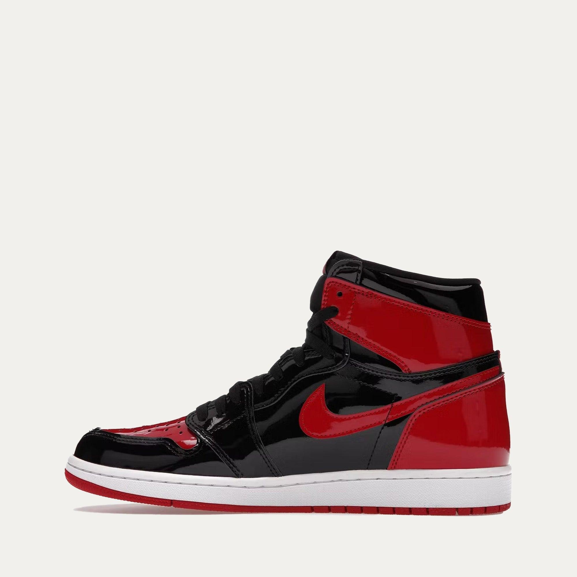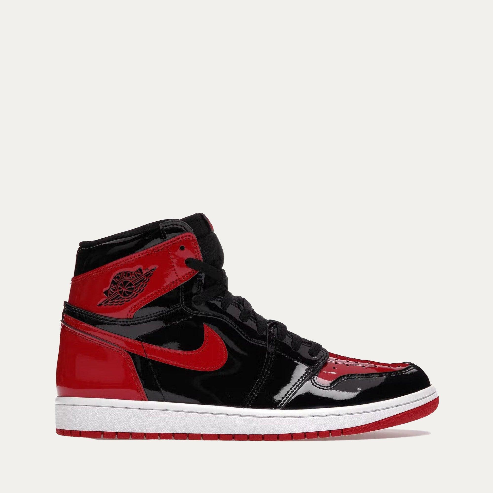 Step out in style with the Air Jordan Retro 1 High OG "Patent Bred." Combining bold colors, classic design, and state-of-the-art technology, these sneakers are sure to turn heads. Stamped with an 'Air Jordan' wordmark Woven Nike Air tag adorns the tongue Stitched Swoosh design Perforated toe Foam midsole Rubber traction All authentic items Shipped from Los Angeles Sku 555088-063