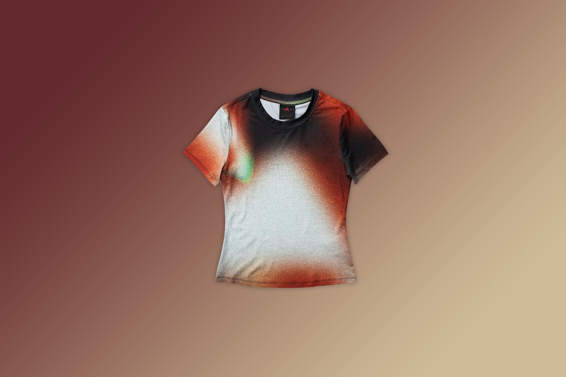 Air Jordan and co-founder of WHO DECIDES WAR, Téla D’Amor come together to create a capsule featuring footwear and apparel. The Air Jordan x Téla Women's T-Shirt is crafted with polyester and spandex, allowing comfort and breathability. Vintage fading color tones appear on the tee, giving it a unique look. ALL SALES ARE FINAL. 84% polyester, 16% spandex Vintage fading colors Crop fit Soft and stretchy feel All sizes are listed in U.S. Women's sizing unless stated otherwise Style No: IB0933-100