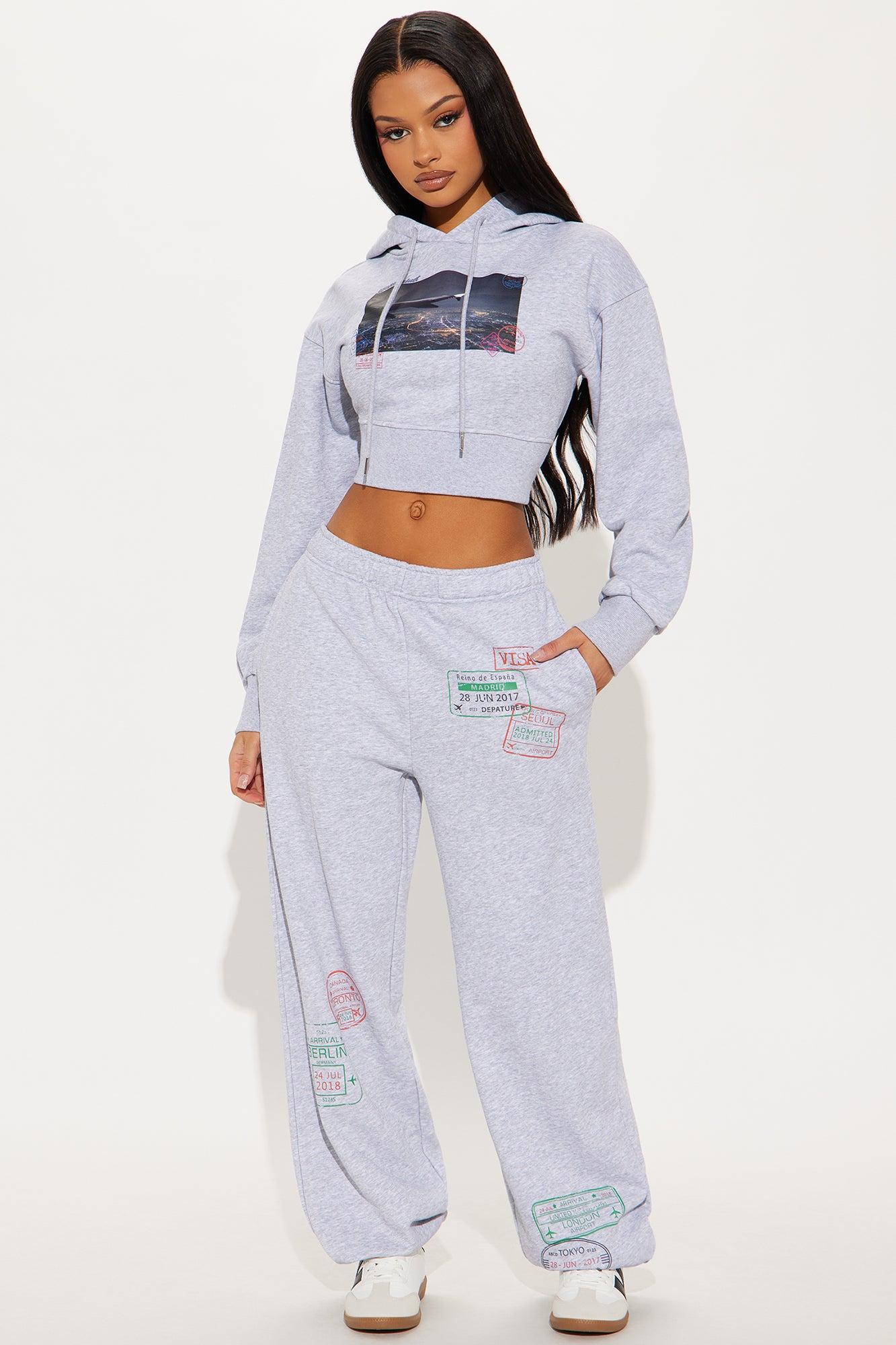Airport Fit French Terry Pant Set - Heather Grey