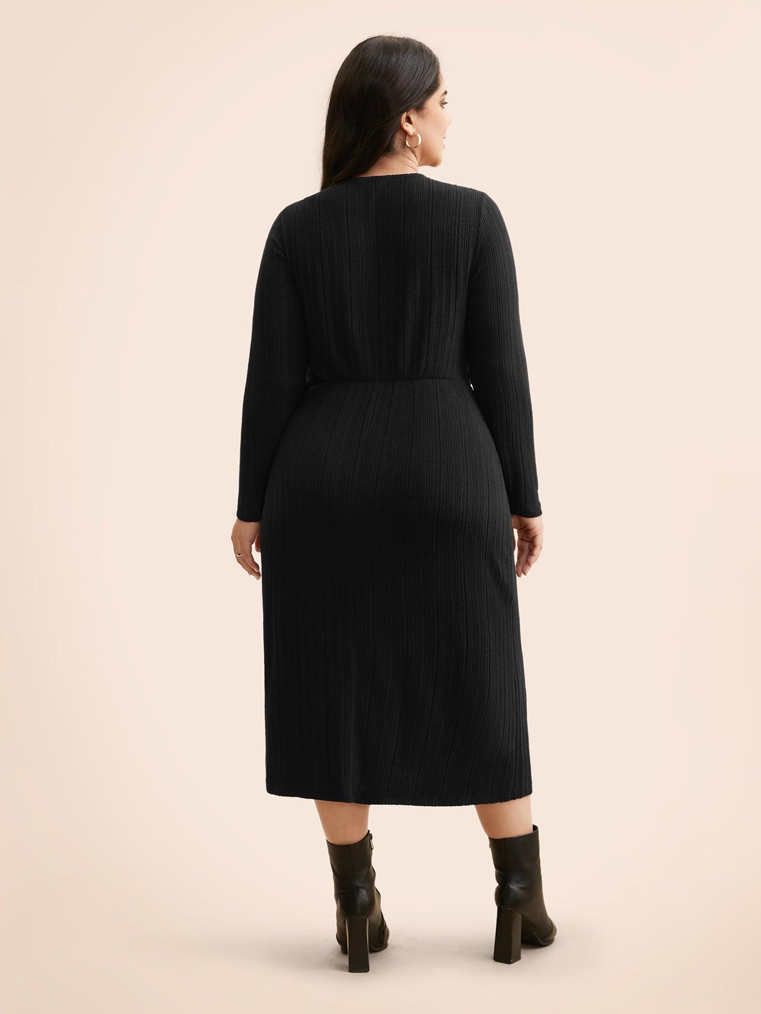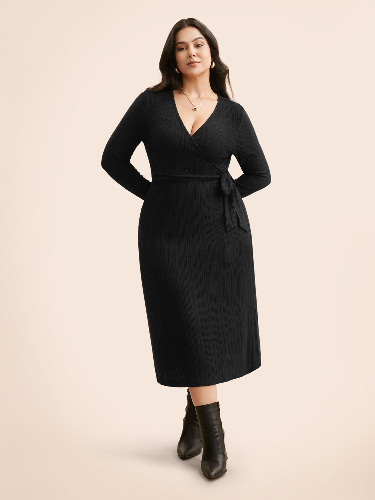 Shop Airy Cozy Waist-Tie Wrap Midi Dress now and redefine your style with confidence at BloomChic. Tailored for mid and plus-size women. This trendy Dresses Women, sizes 10-30. Season:Winter;Color:Black;Style:Casual;Neckline:Overlap Collar;Sleeve Type:Regular Sleeve;Prints:Non;Details:Tie knot, Gathered;Pocket:No-pocket;Belt:No-belt;Closure Type:Non