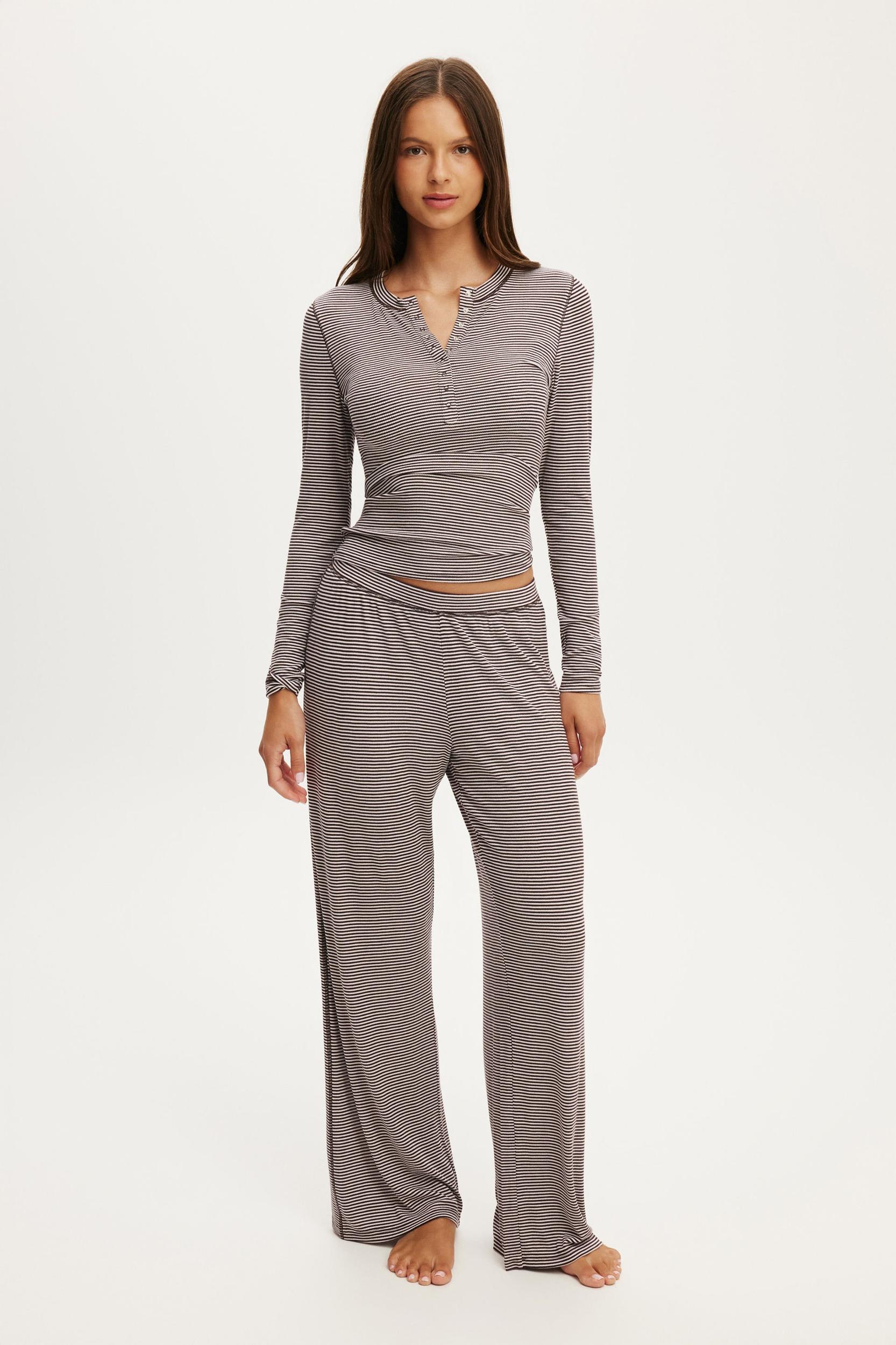 You'll never sleep as comfortably as you do in our sleep recovery wide leg pant. The lightweight bamboo blend fabric offers great breathability and is beautifully soft to touch.