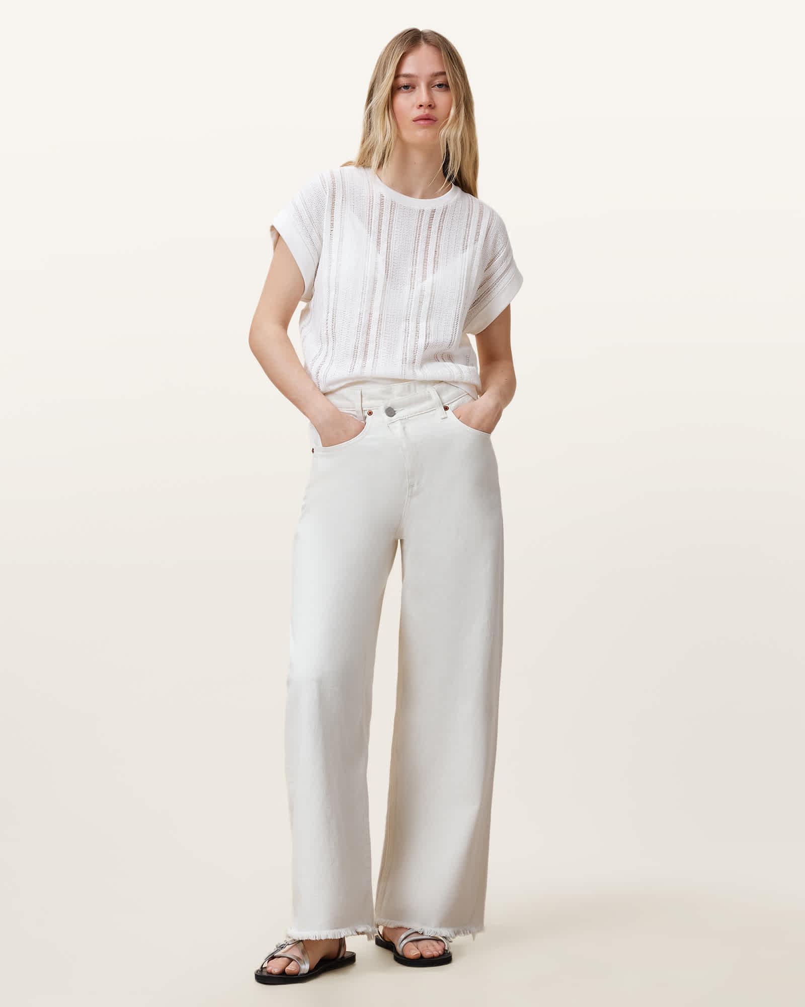 Aki Crossover Wide Leg Denim Jeans Chalk White | ALLSAINTS US