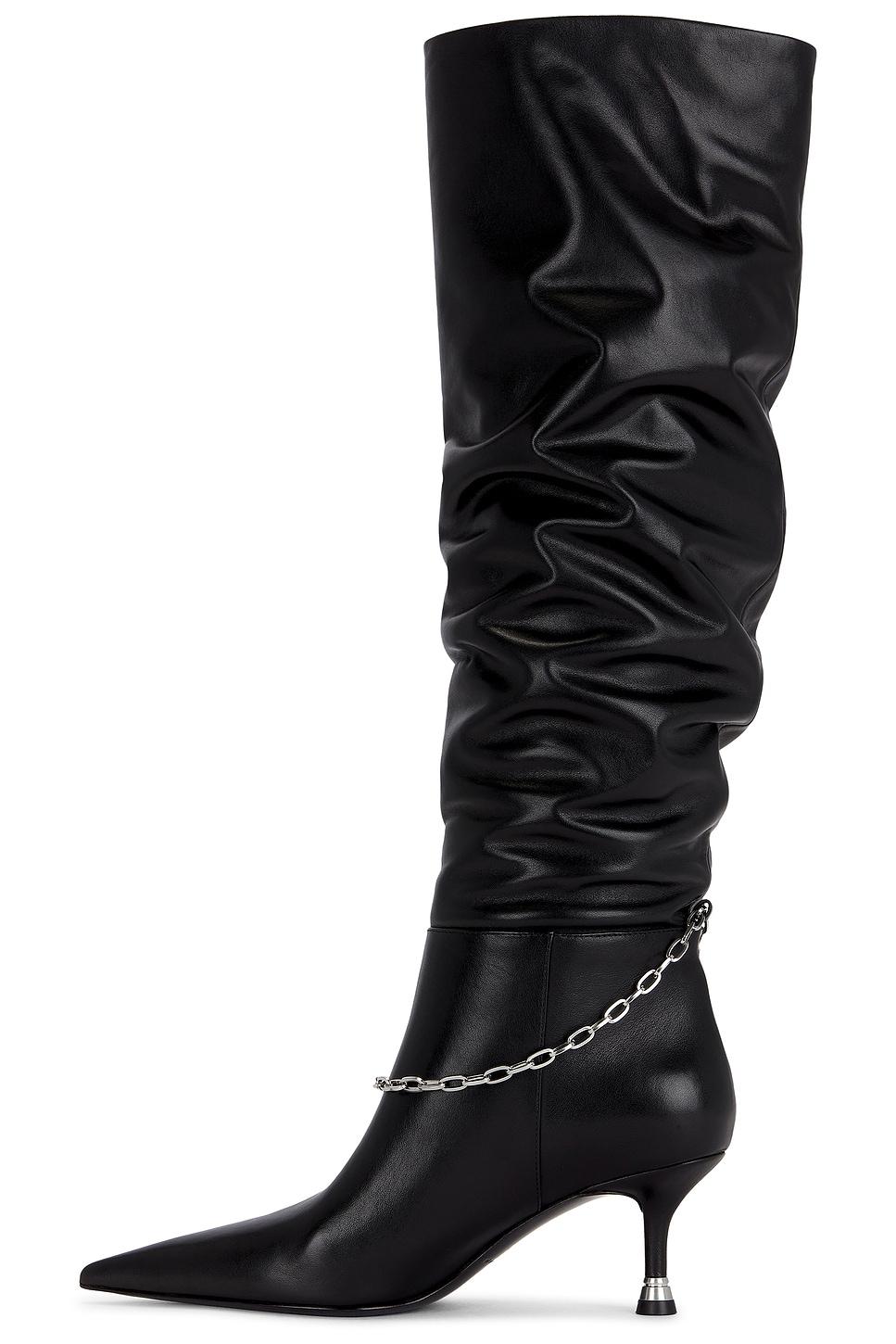 bootLeather upper, lining, and sole / Made in China / Pull-on styling / Padded leather footbed / Slouch shaft construction / Elongated point toe / Removable crystal anklet ornament / Approx 65mm/ 2.5 inch heelApprox 533.4mm/ 21 inch shaft / Our Style No. AWAN-WZ445 / Manufacturer Style No. 30126B014 /
