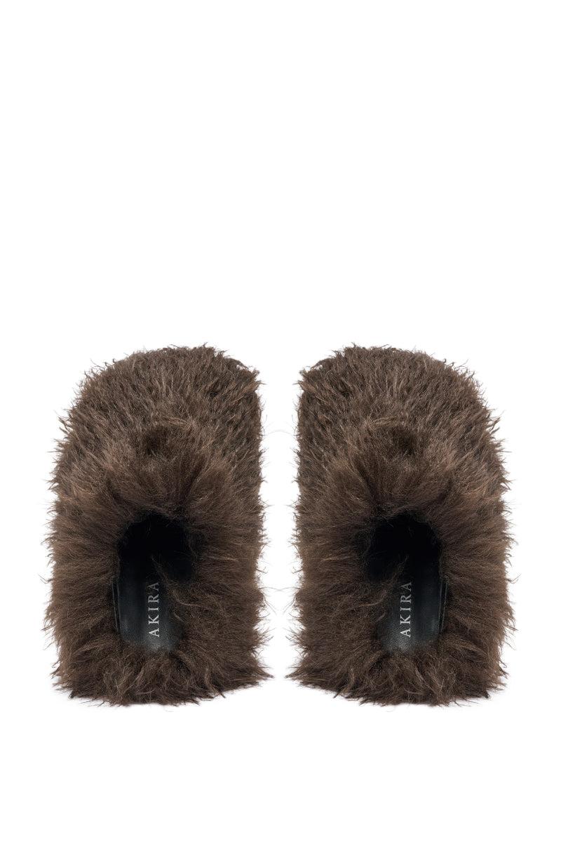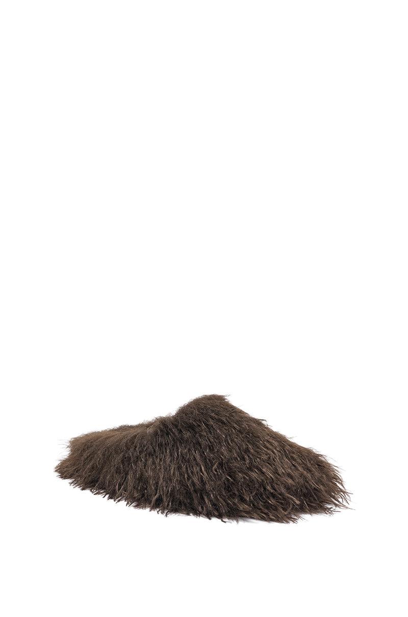 Too Fuzzy? Never! The AKIRA Label Angol Chocolate Shaggy Flat Slipper blends comfort and style with its wildly plush, curly chocolate brown faux-fur upper that makes every step feel like walking on a cloud. This statement slipper features a soft interior, flat sole, almond toe, and easy slide-on fit for a fun, textured look that turns loungewear into a fashion moment. - Faux Fur Upper- Almond Toe - Flat Sole- Imported