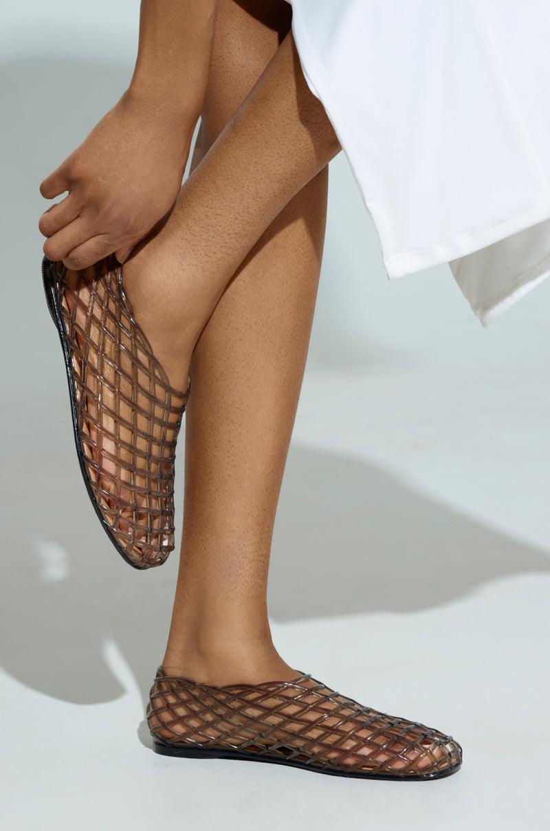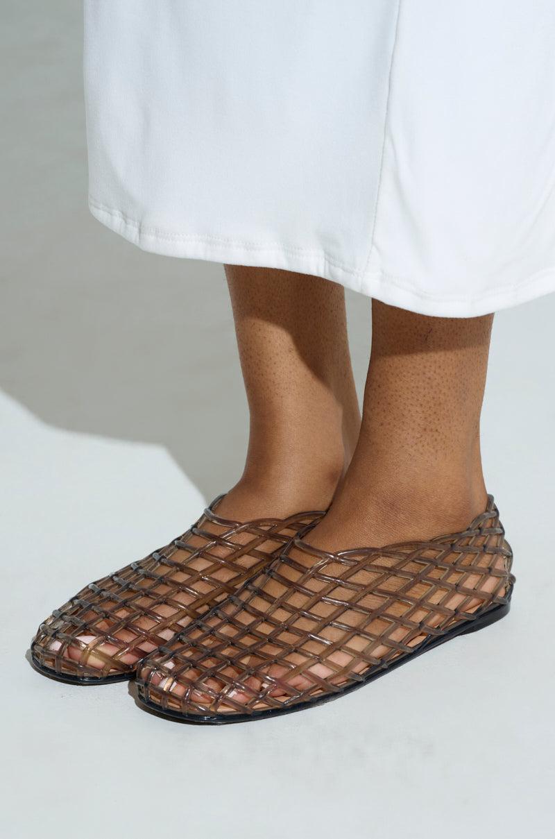 Summer just got better with The AKIRA Label Linus Black Flat. These breezy steppers are crafted from a tinted, translucent PVC material and feature a cage-like construction that hugs the entirety of the foot, an almond toe silhouette, a flat sole, a short chunky heel, and a sleek faux leather insole. Complete with an easy, slip-on fit. Pair with linen pants or sundresses to chill in the sun. (all measurements approximate from size 8)- PVC Upper- Almond Toe- Flat Sole- Short Chunky Heel- 0.25” Heel Height- Imported Product ID: 473527