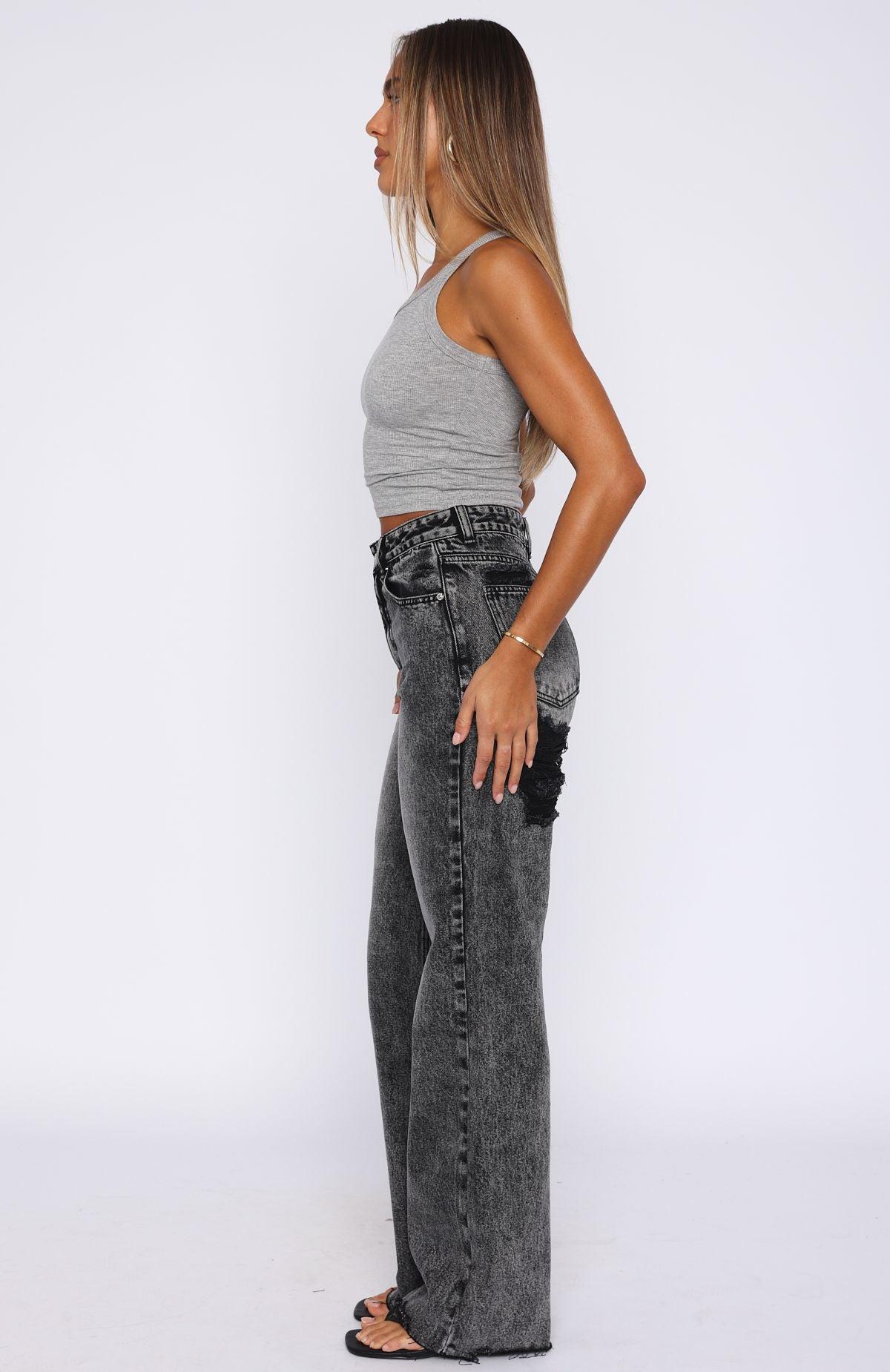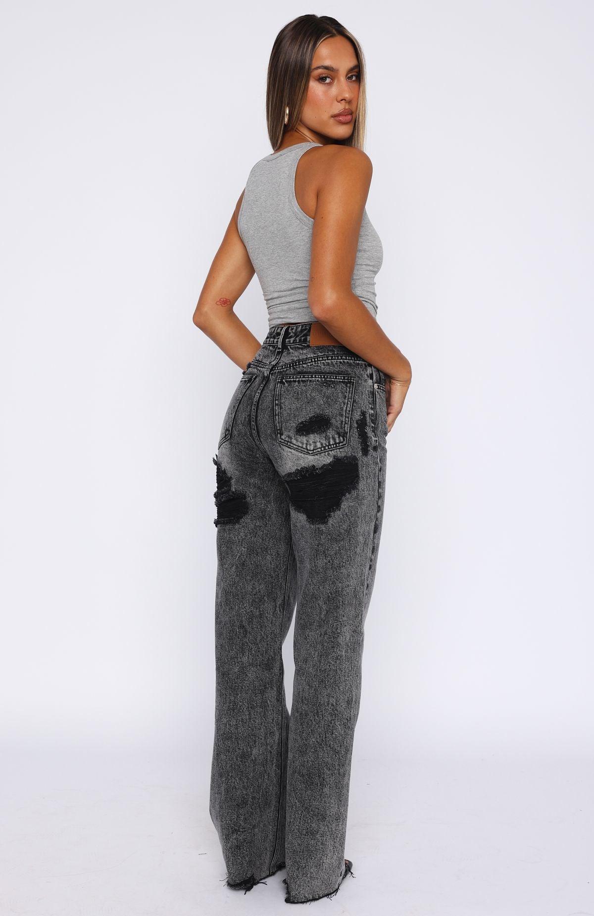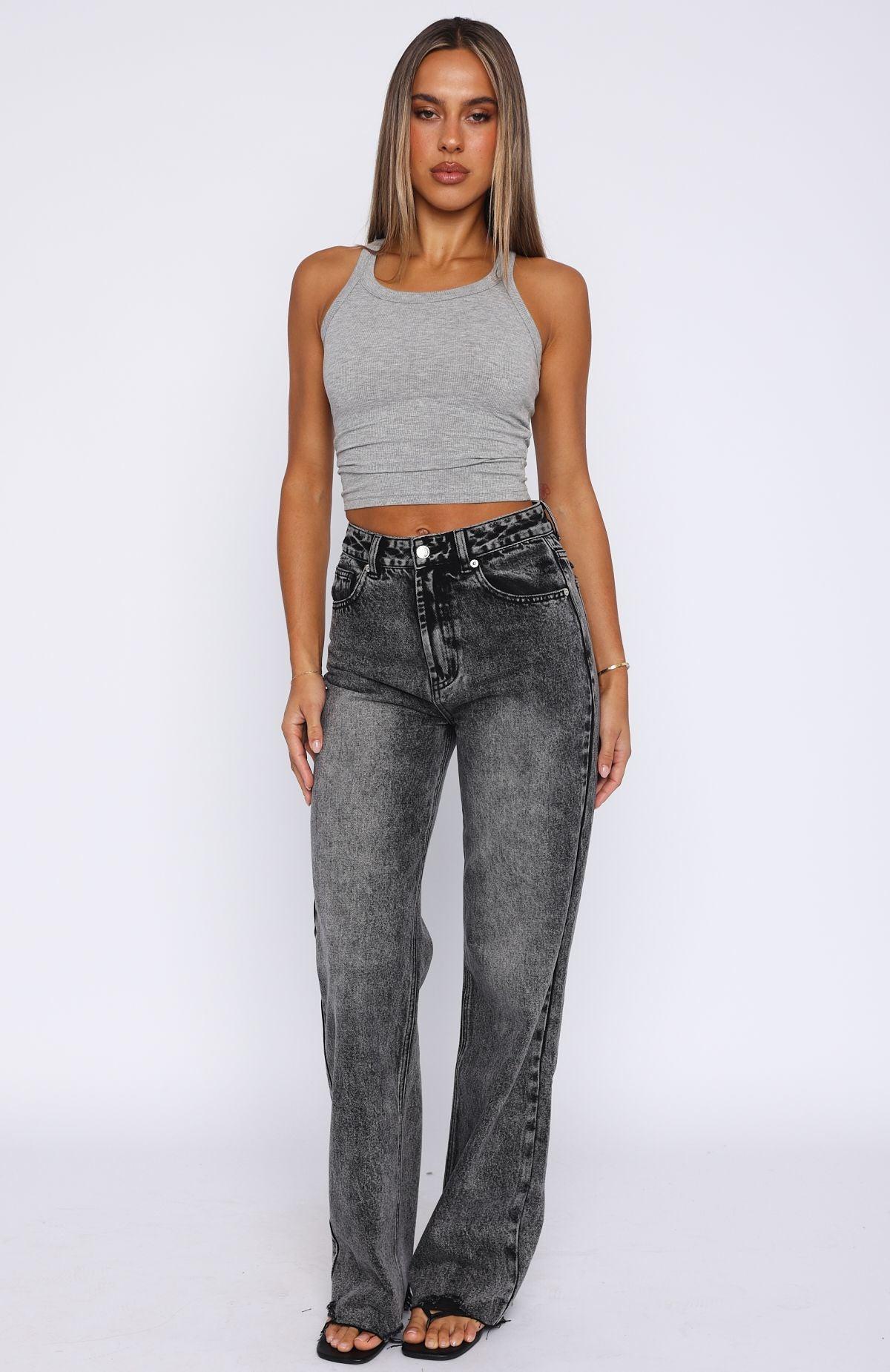 Get ready to up your denim game in the Alana High Waisted Straight Leg Jeans in Grey Acid! Features high rise, relaxed straight leg style, slight distressed hem detailing, silver button closure & zip at front, belt loops, 5 pocket design and frayed covered back rips. Pair with a cute crop top and sneakers for a casual but chic look. 89.3% Cotton 1.6% Viscose 9.1% Polyester Ash is 166cm & wears a S Mik is 171cm & wears a S Due to the nature of denim, washes will vary per individual garment. Colour fade/ transfer naturally occurs but will ease over time as the garment wears. We recommend washing your denim inside out, in cold water.