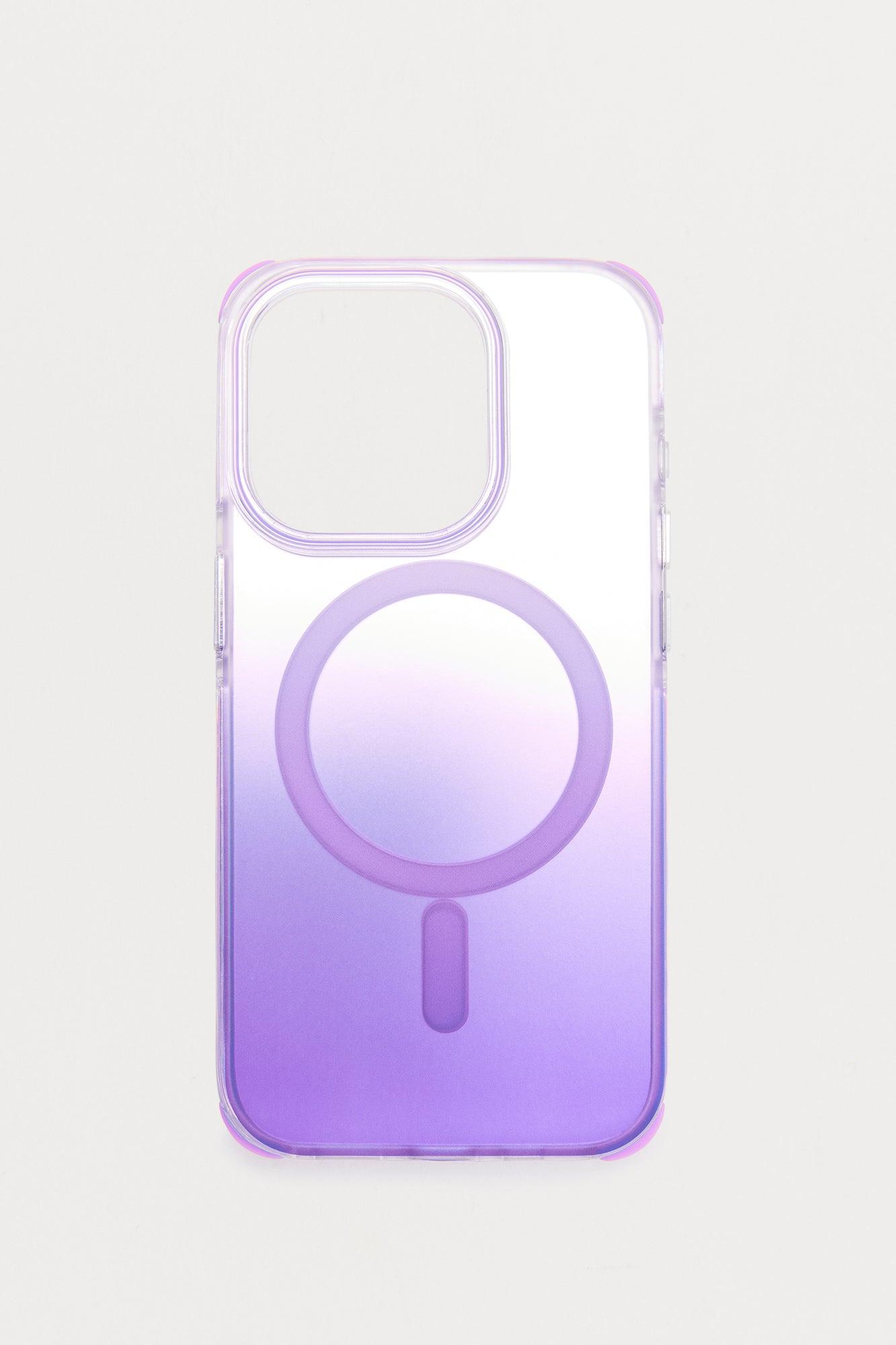 Available In Pink And Purple. Phone Case Tech Accessory Compatible With iPhone 15 Pro Magnet Charge Ring Ombre Design Shockproof Detail Final Sale Imported California Proposition 65 WARNING: Cancer and Reproductive Harm - www.P65Warnings.ca.gov.