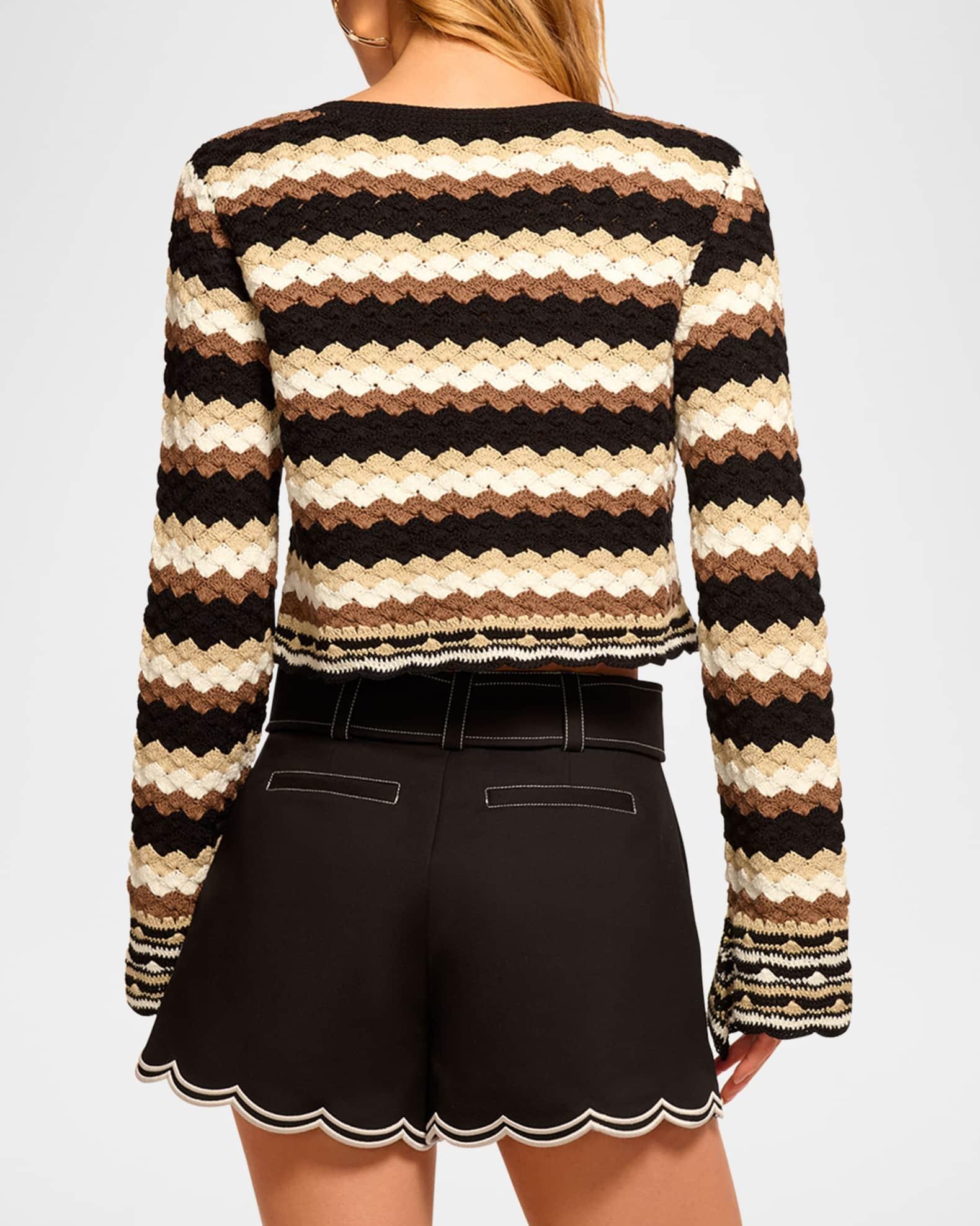 Ramy Brook "Alanza" cardigan featured in a neutral crochet-knit construction with scalloped trim Approx. 23"L from shoulder to hem Crew neckline with front cutouts Long sleeves Classic fit Hip length Button front closure Cotton Hand wash or dry clean Imported