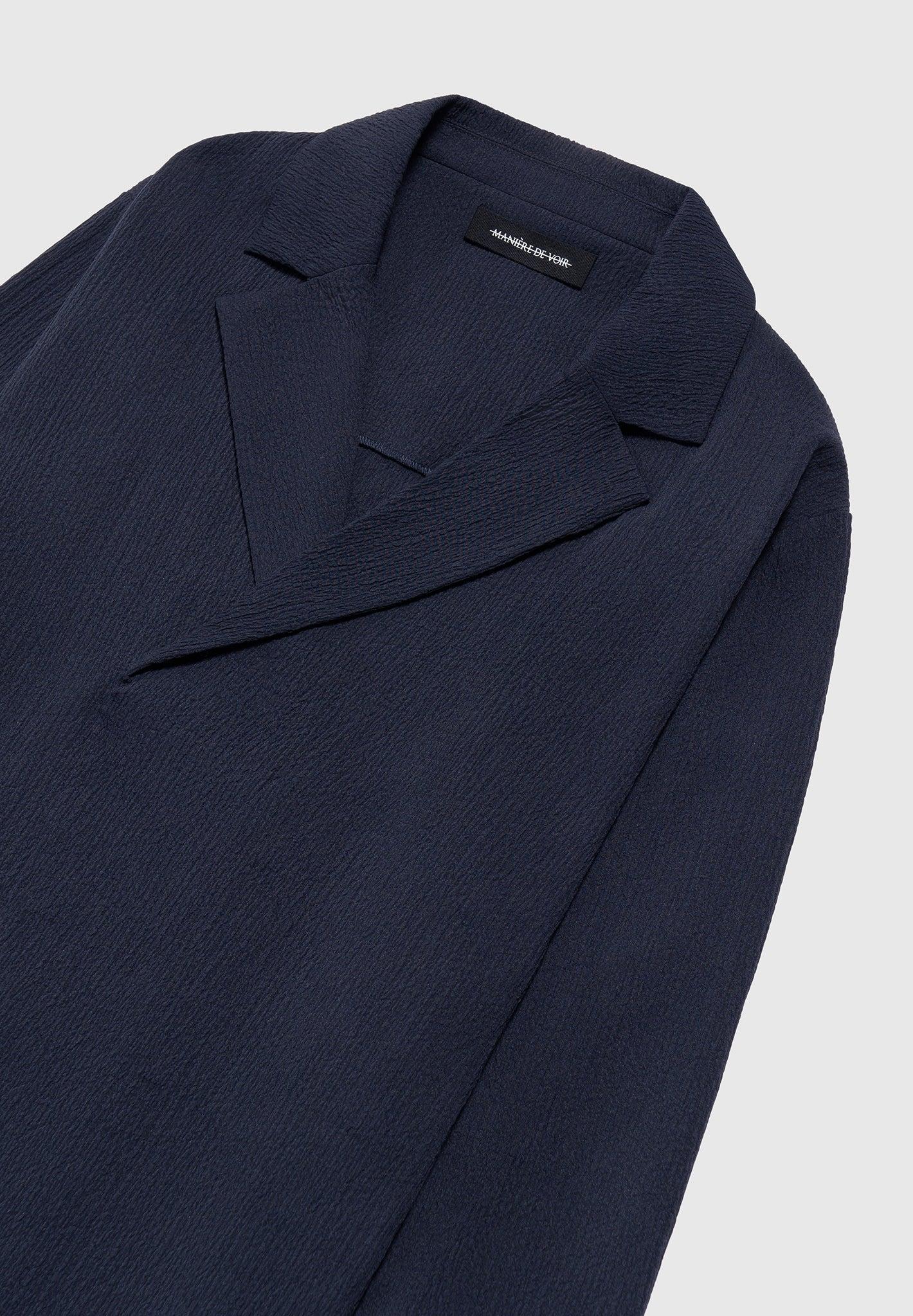 Introducing our Seersucker Double Breasted Shirt in Navy. This long-sleeve silhouette presents a regular fit with a relaxed, open collar to ensure comfortable wear. With a secure internal button fastening and deluxe, textured fabric, this shirt seamlessly marries style with practicality. Fabric: Always check the care label for wash instructions. Model is 6'0", 40" Chest, 30" Waist and Wears Size Medium Based On Size M - Front Length cm/in, Chest cm/in, Sleeve Length cm/in Stretch Factor - /3